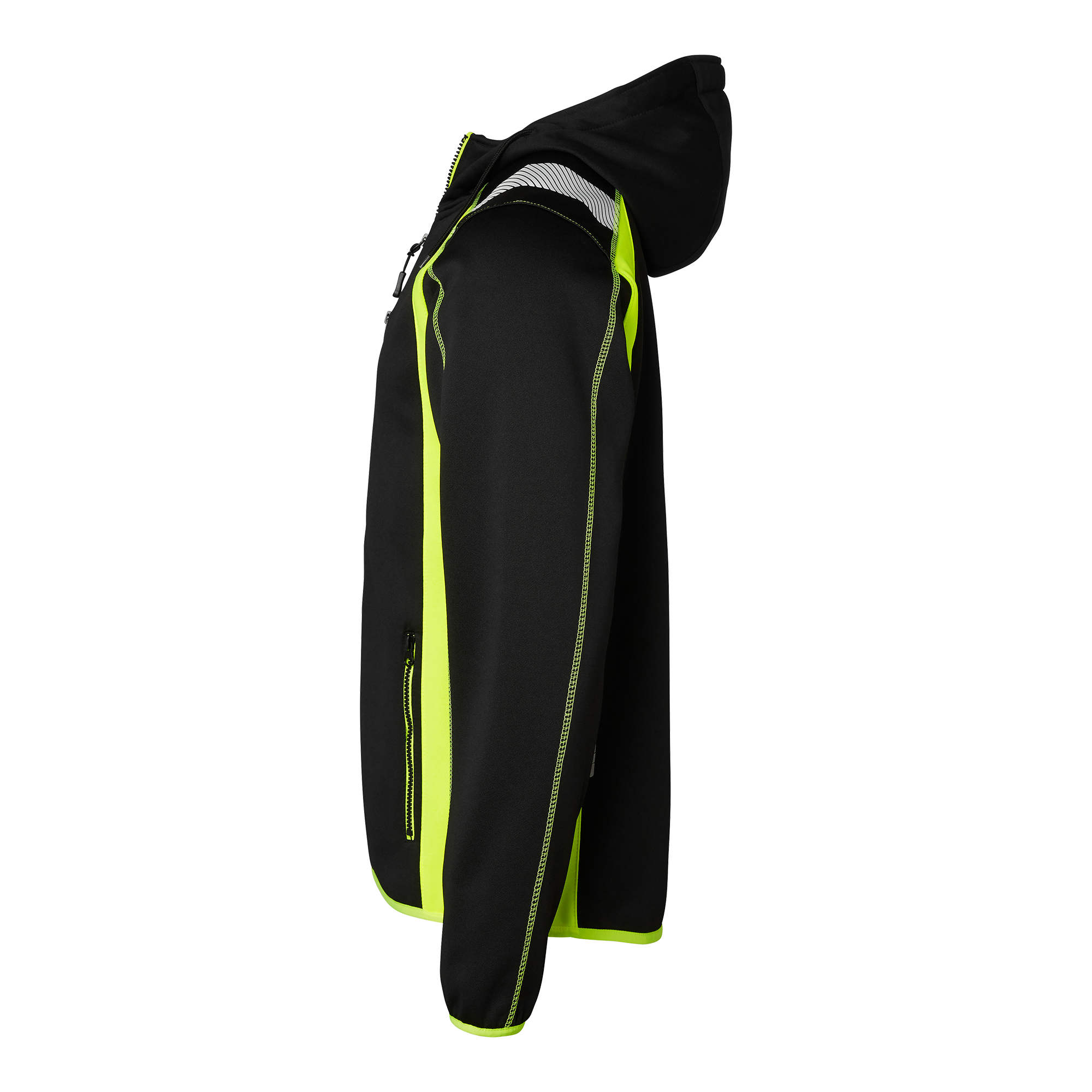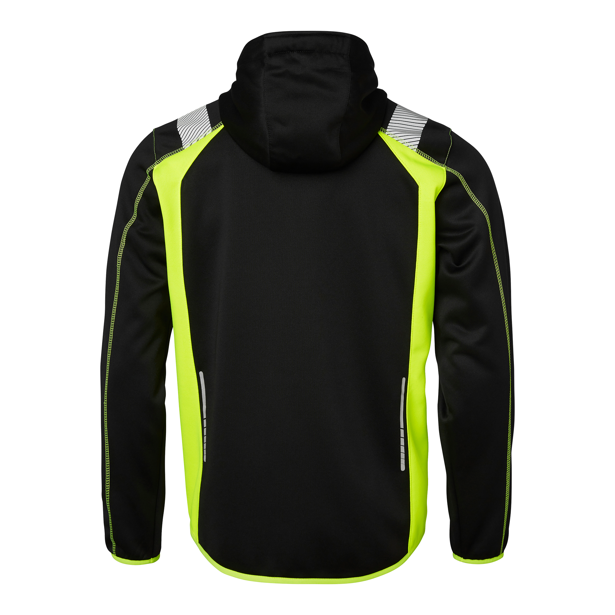 Hoodie med hel dragkedja och kedjeskydd, bröstficka med dragkedja och knäppanordning för ID-kort. Reflex för hög synbarhet, två framfickor, telefonficka, och huva med snodd. Elastisk nederkant och ärmslut. Perfekt för arbete i krävande miljöer.