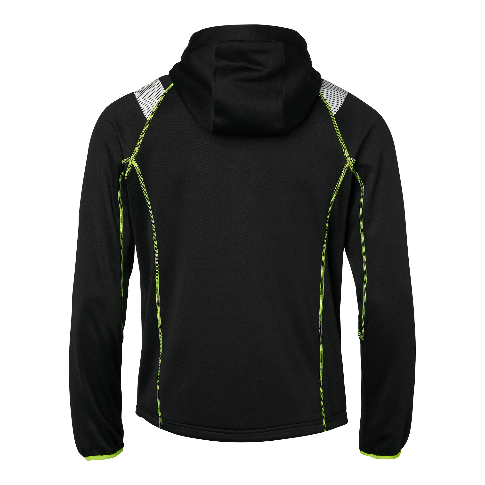 Hoodie med hel dragkedja i mjuk polyester med fleecefoder. Förhöjd synbarhet med reflexdetaljer, bröstficka, två framfickor, elastiskt ärmslut och dragsko i nederkant. Perfekt för ökad synlighet i arbetsmiljöer.