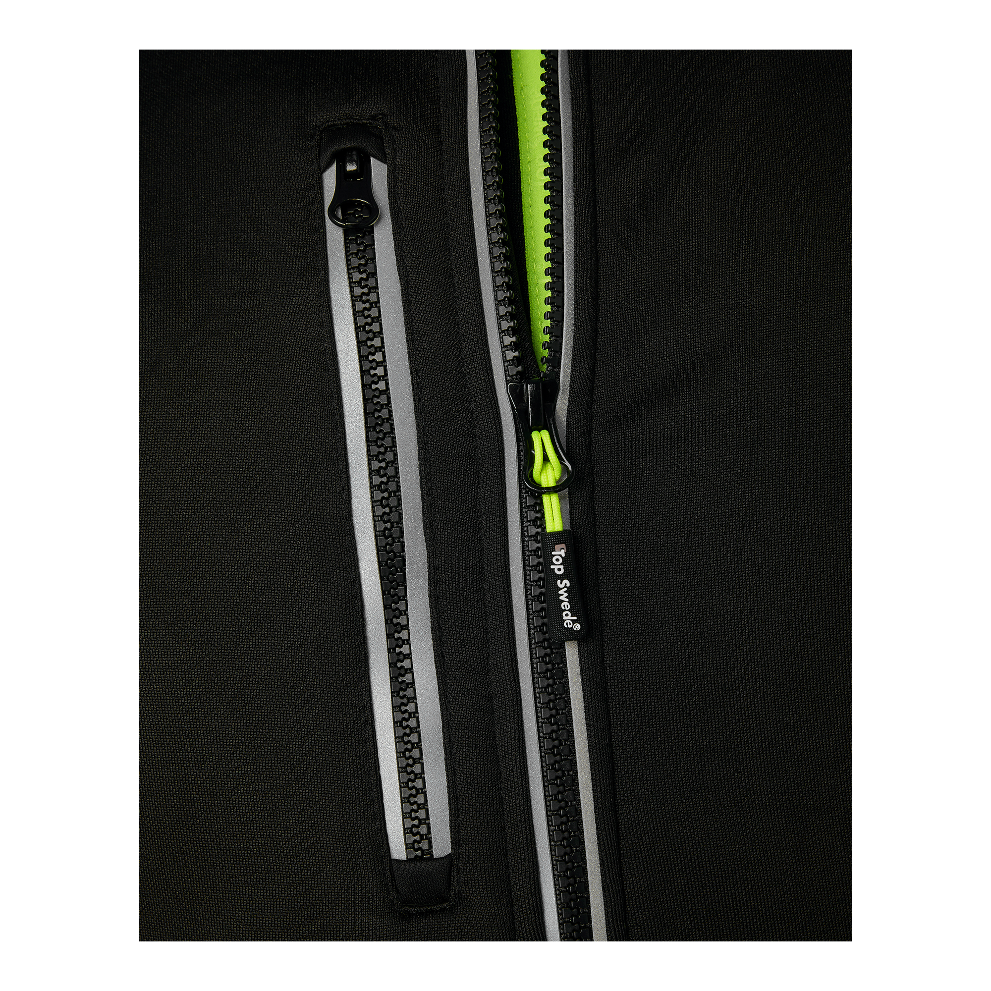 Upptäck Top Swedes 353 Sweat, en hoodie designad för yrkesverksamma inom bygg och industri som kräver både komfort och ökad synbarhet. Tillverkad av mjuk polyester med fleecefoder på insidan, erbjuder denna hoodie optimal värme och komfort. Den har en hel dragkedja med vindslå och kedjeskydd som går ända upp i kragen för extra skydd mot väder och vind. Reflexdetaljer ökar synligheten och säkerheten på arbetsplatsen. Förvaringsmöjligheterna inkluderar en bröstficka med dragkedja och två framfickor med dragkedja, vilket ger gott om plats för dina nödvändigheter. Elastiska ärmslut och en dragsko i nederkant säkerställer en perfekt passform och komfort hela dagen. Välj 353 Sweat för en kombination av funktionalitet, hållbarhet och komfort som uppfyller de högsta standarderna inom arbetskläder.