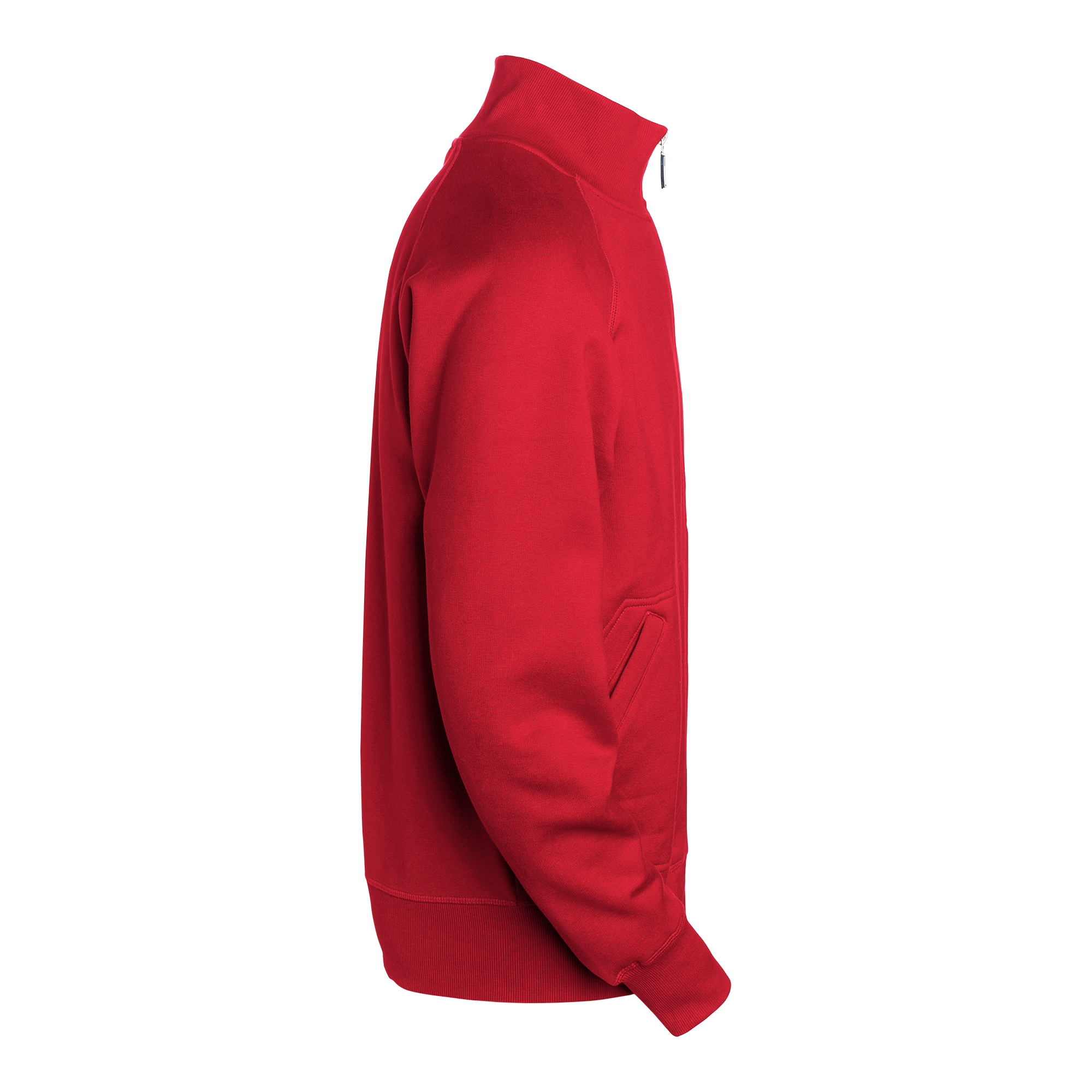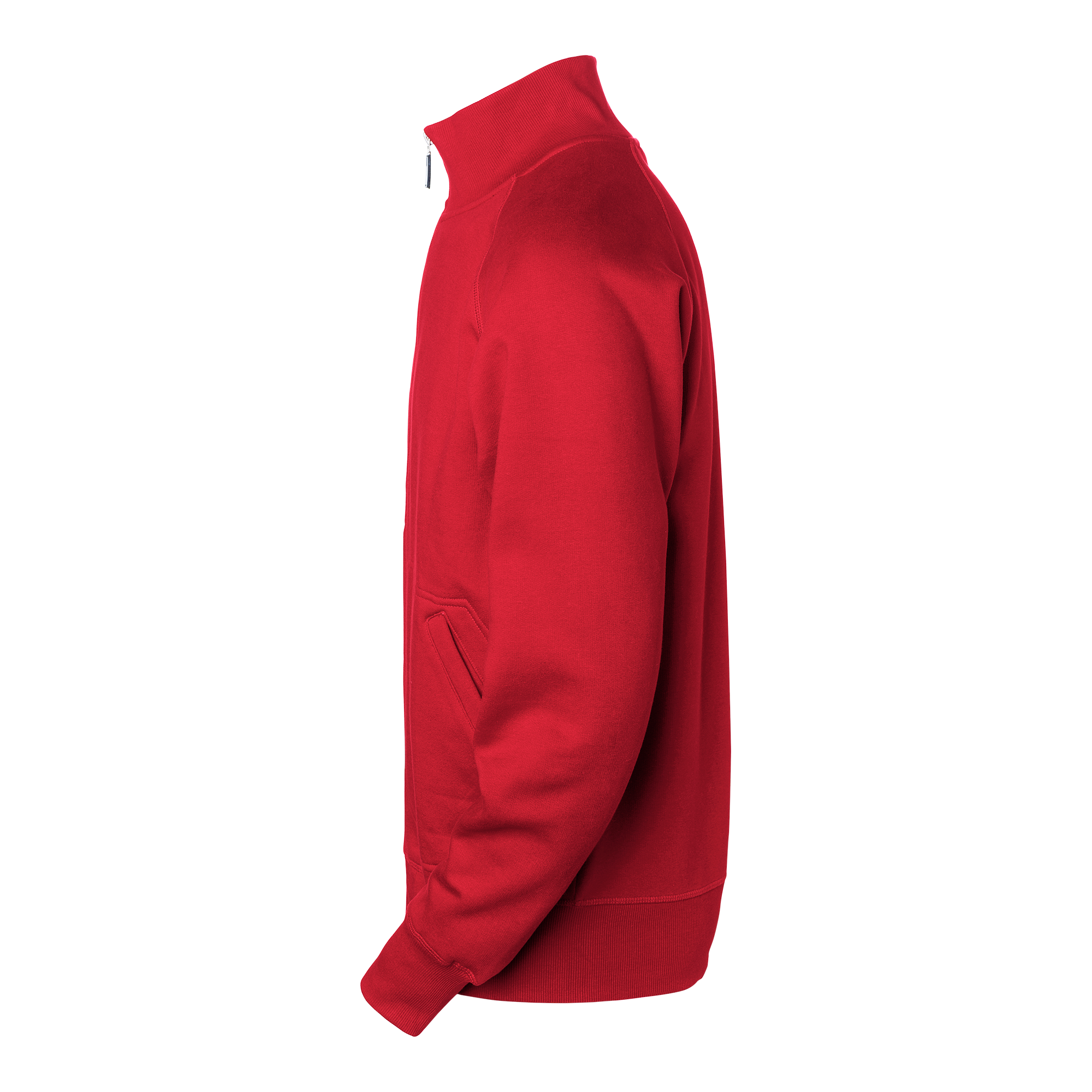 Collegejacka med hel dragkedja, borstad insida och raglanärm. Elastiska muddar i krage, ärmslut och nederkant. Dekorativa stickningar runt frontfickor och mudd för en stilren look.