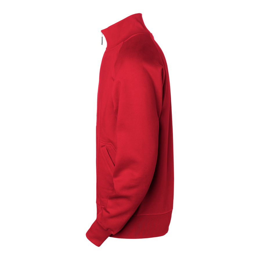 Collegejacka med hel dragkedja, borstad insida och raglanärm. Elastiska muddar i krage, ärmslut och nederkant. Dekorativa stickningar runt frontfickor och mudd för en stilren look.