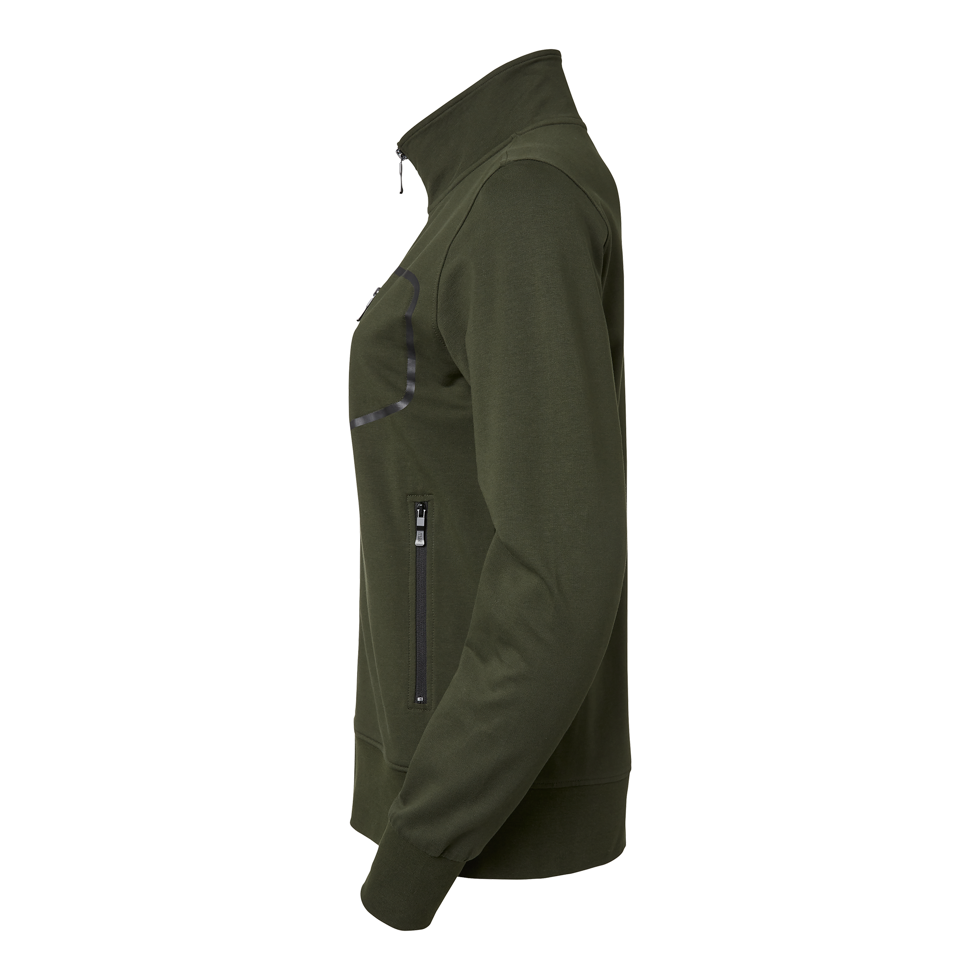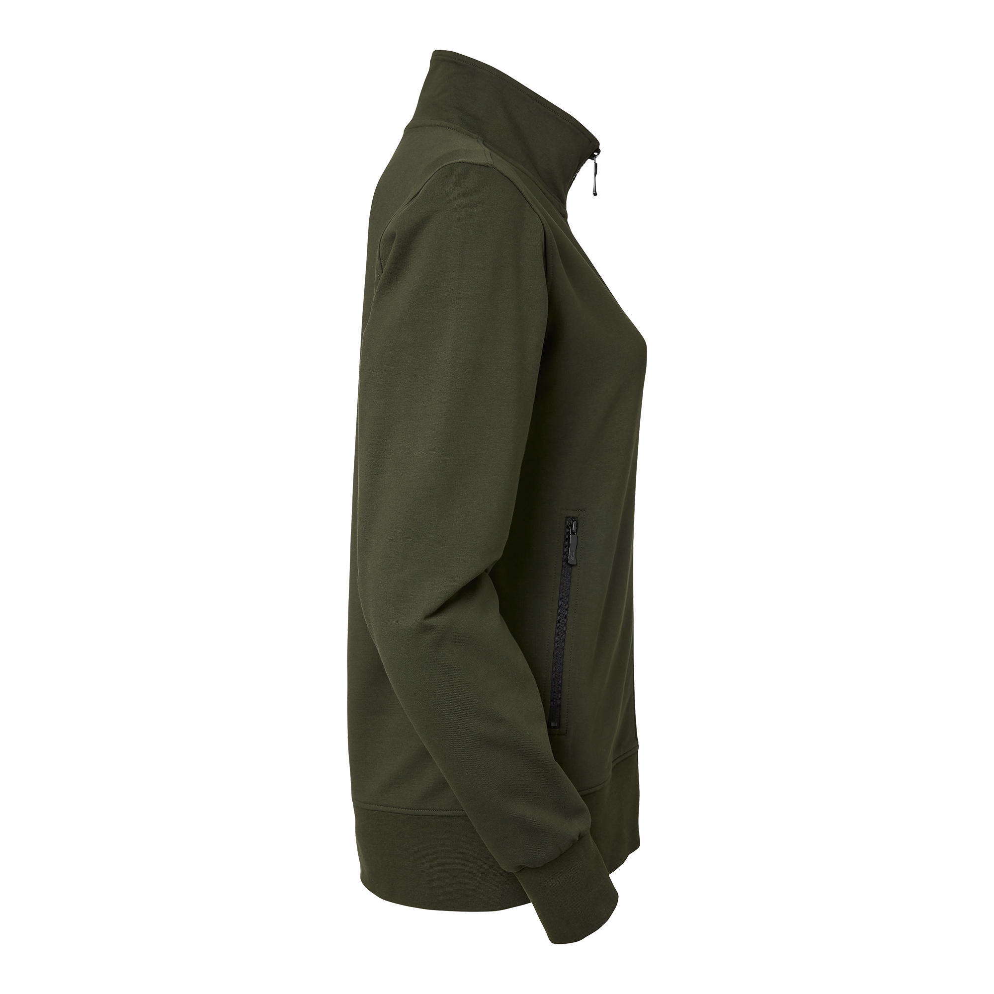 Collegejacka med figurnära dampassform i tunn och stretchig kvalitet. Hel dragkedja och ståkrage, sidofickor och bröstficka med dragkedja. Präglade logo-kläppar för en elegant detalj.