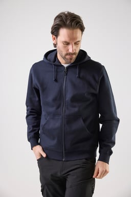 Collegejacka med hel dragkedja, dubbla tyglager i huvan och två frontfickor. Elastisk mudd i nederkant och ärmslut. En bekväm och slitstark unisexmodell för både arbete och fritid.