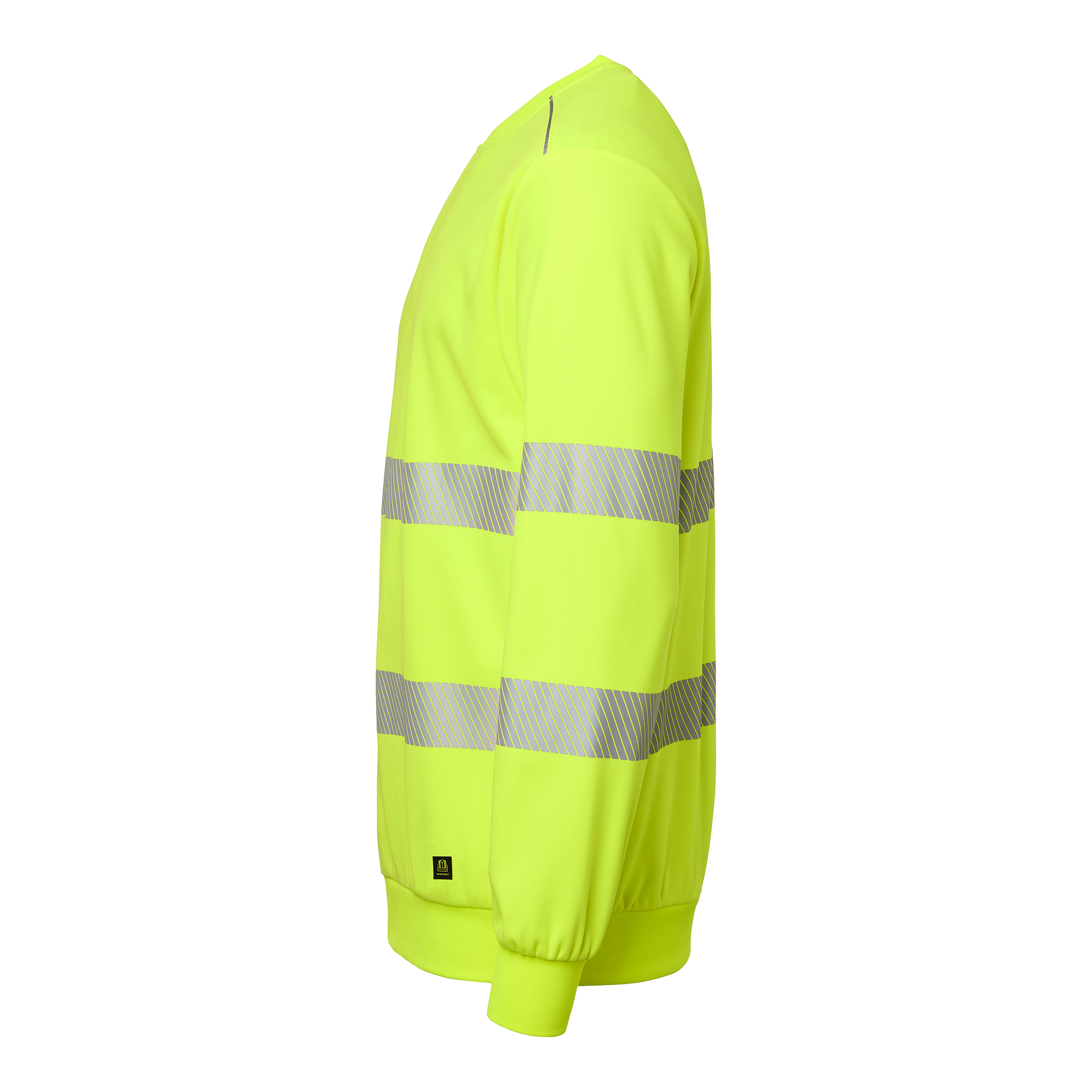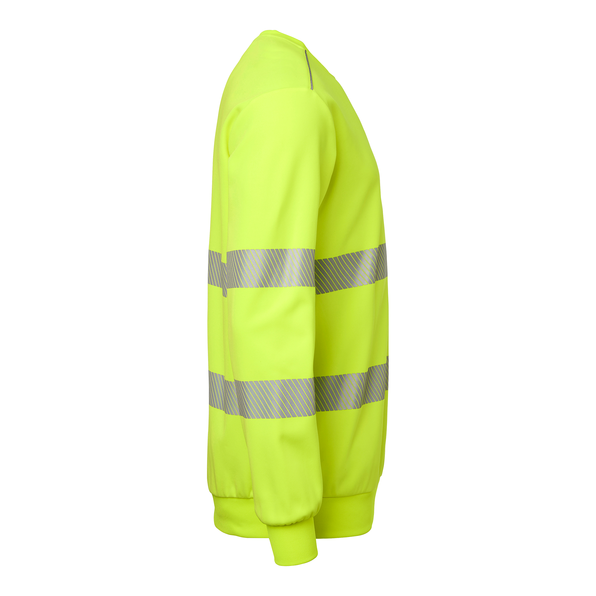 Varsel-sweatshirt med rund hals, segmenterad reflex samt mudd i nederkant och ärmslut. Tillverkad i återvunnen polyester för hållbarhet och komfort. Perfekt för krävande arbetsmiljöer.