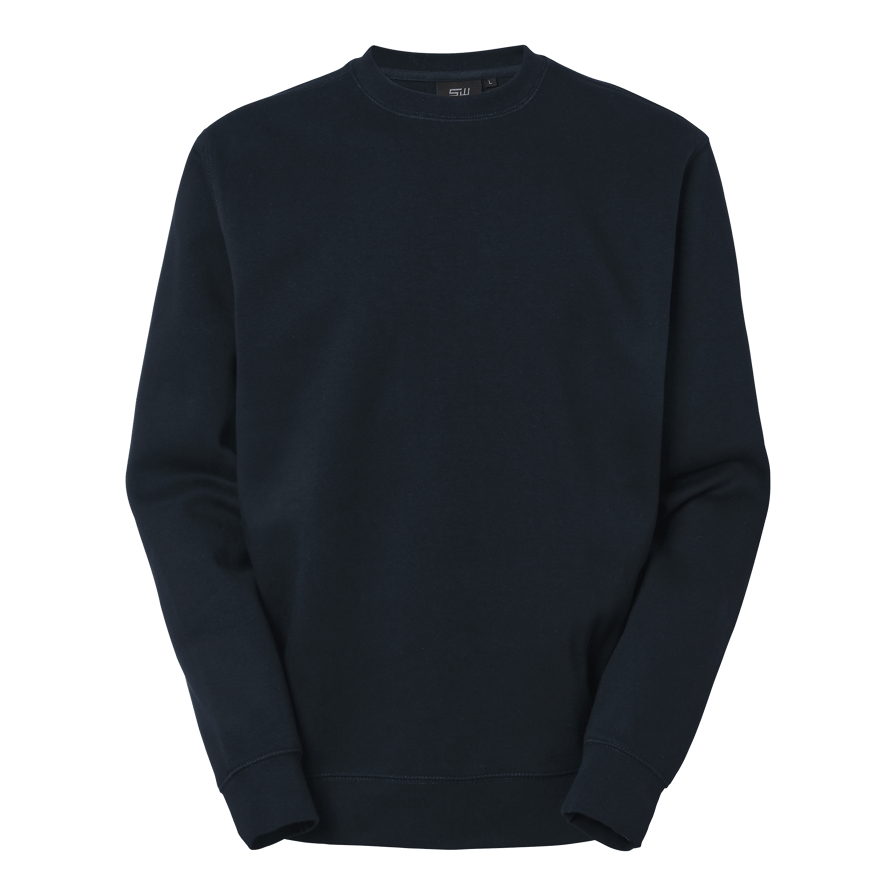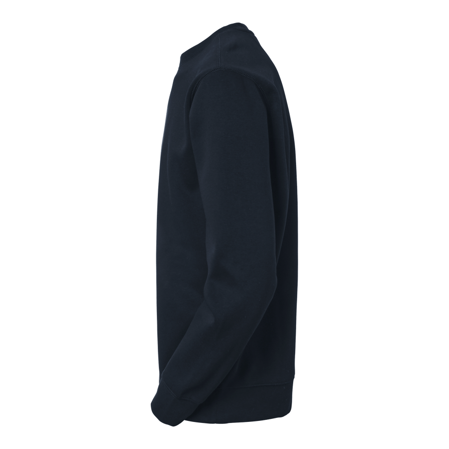 Rundhalsad collegetröja med flatlocksömmar och borstad insida. Elastan i halsribb för ökad hållfasthet. En bekväm och slitstark unisexmodell, perfekt för både arbete och fritid.