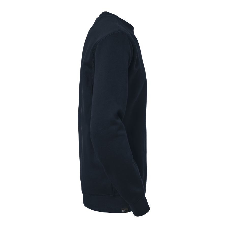 Rundhalsad collegetröja med flatlocksömmar och borstad insida. Elastan i halsribb för ökad hållfasthet. En bekväm och slitstark unisexmodell, perfekt för både arbete och fritid.