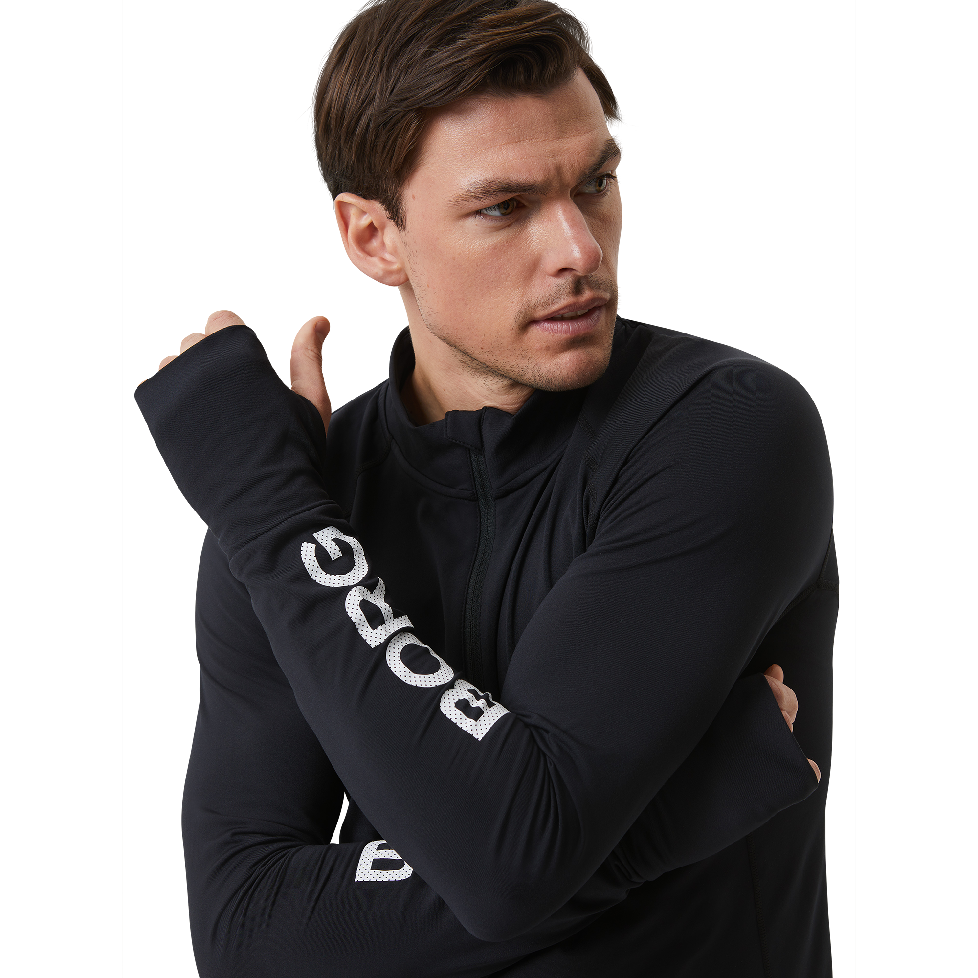 Björn Borg Borg Half Zip är en skön mellanlagertröja med hög krage och ½ blixtlås. Tillverkad i ett mjukt och följsamt material av återvunnen polyester och elastan. Passformen är lite längre i modellen och med något längre ärmar med hål för tummarna. Bär den under en vindjacka för fler användningsområden.