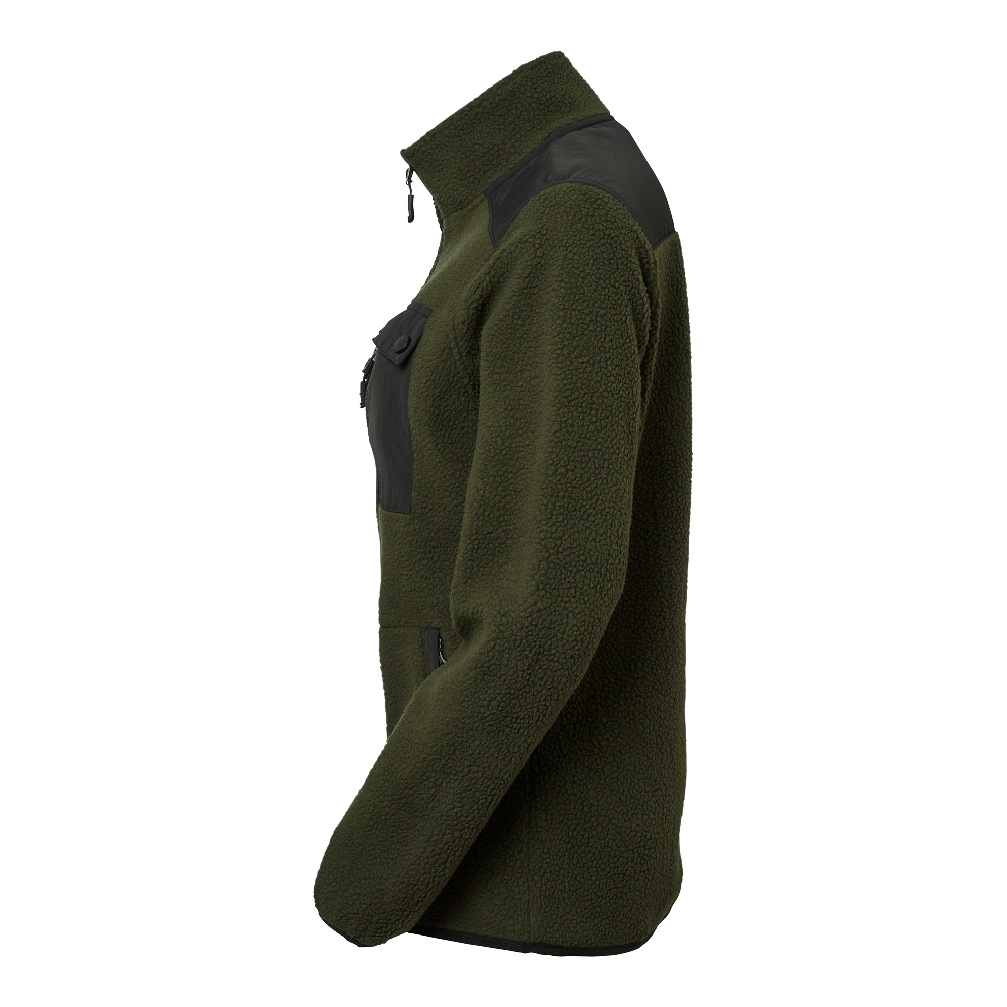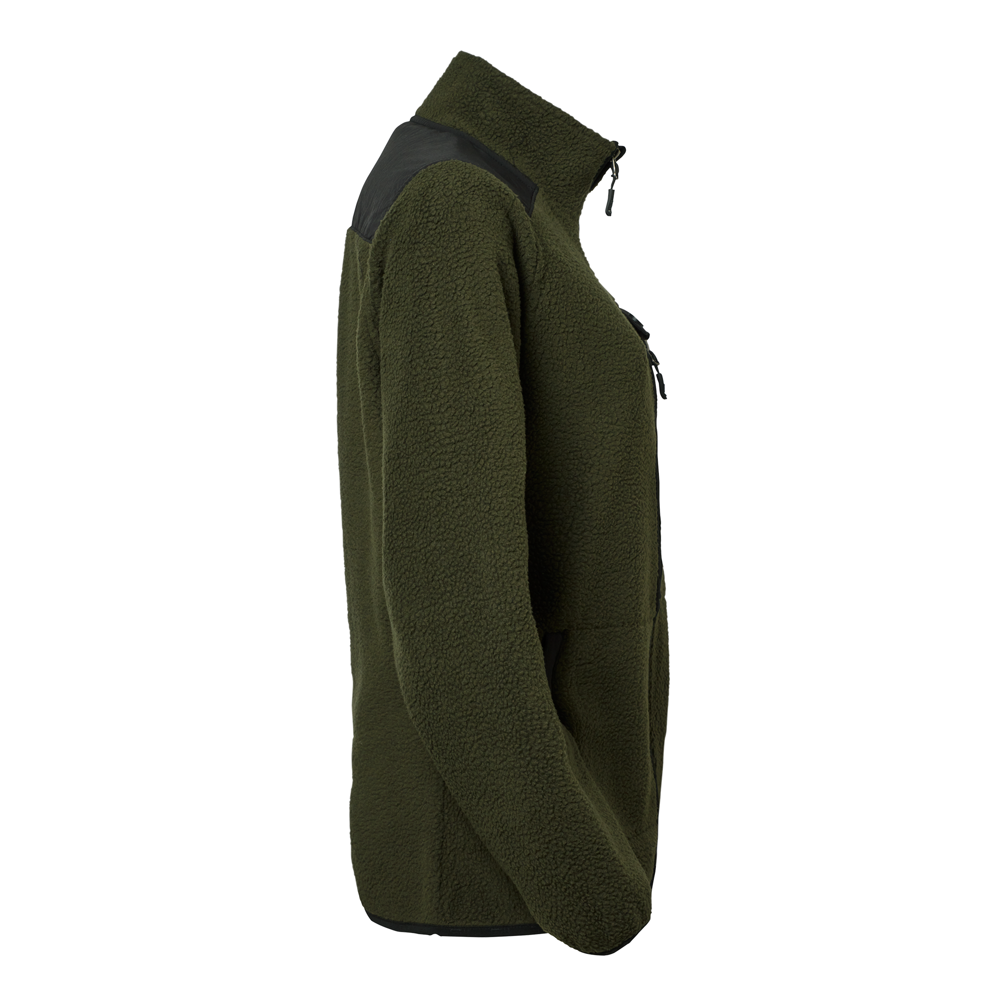 Sherpa-fleece i figurnära dampassform med mjuk insida och fluffig utsida. Förstärkta partier på axlar och ok. Två sidofickor, stolpfickor och en bröstficka med dubbla funktioner. Rundad nederkant baktill och diskret SW-tape vid plaggslut.