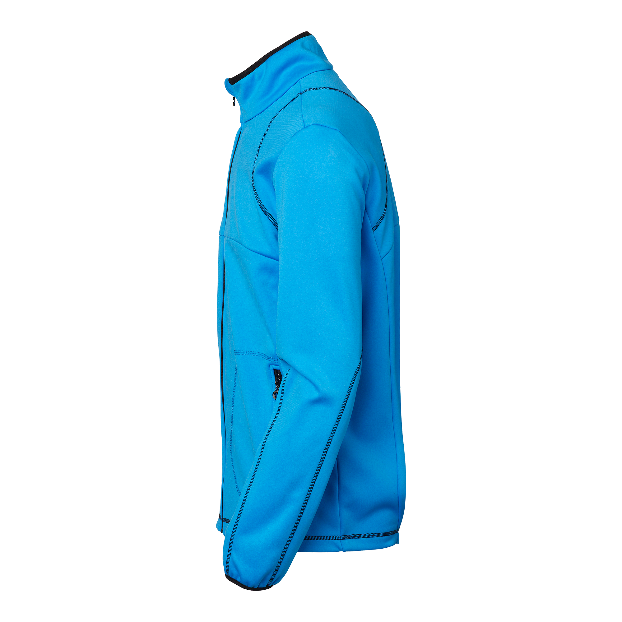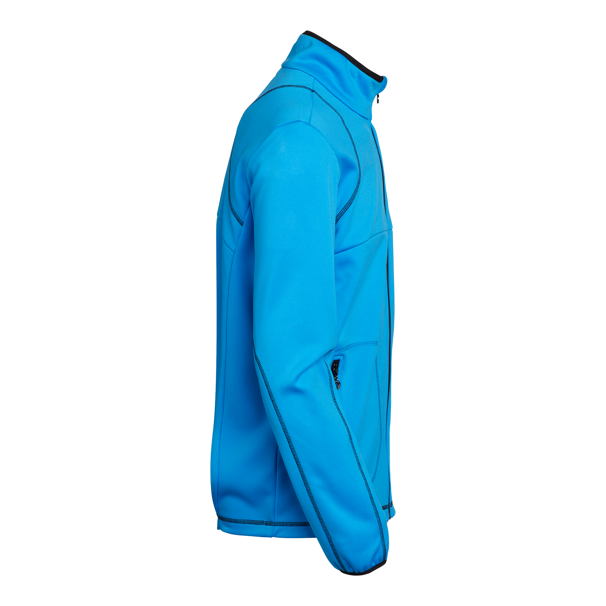 Powerstretchjacka med elastiska bandkanter i kontrastfärg vid hals och ärmslut. Utrustad med dragkedjor och detaljerade kläppar i kontrastfärg. Högerärm med mobilficka och sladdöppning på insidan.