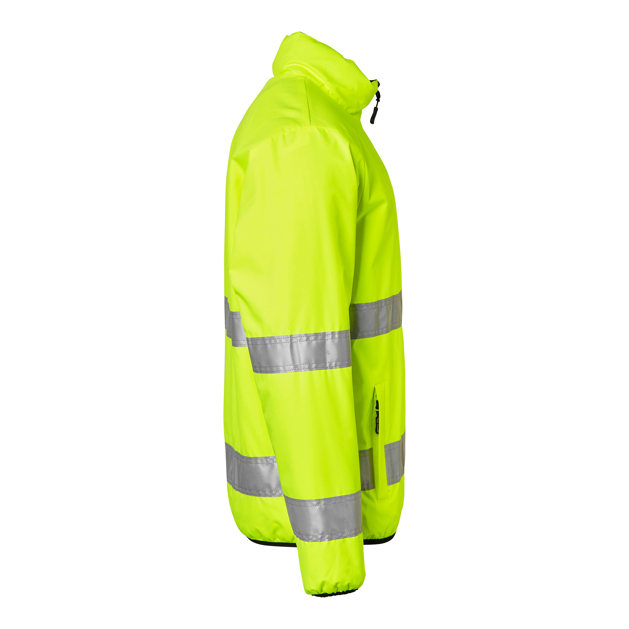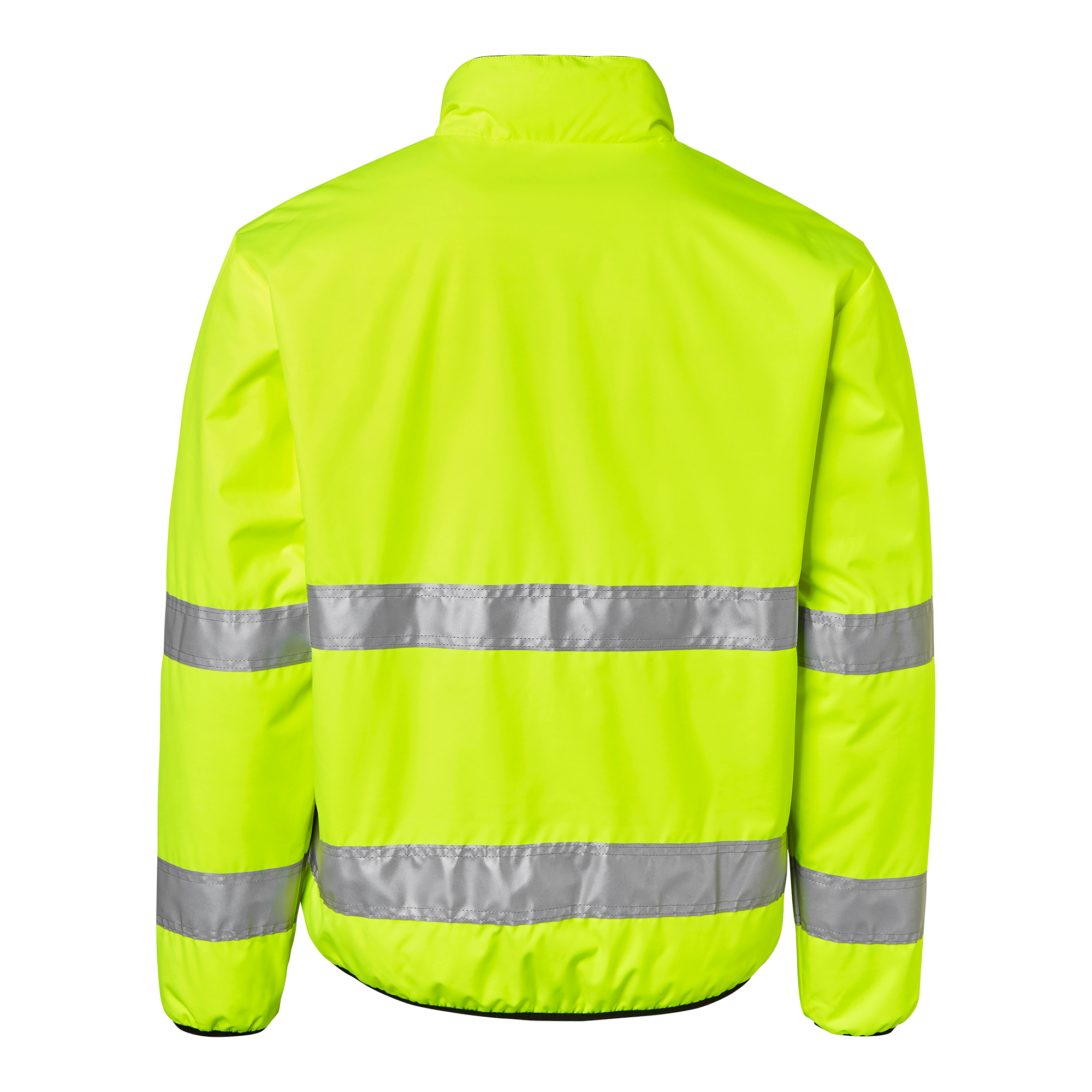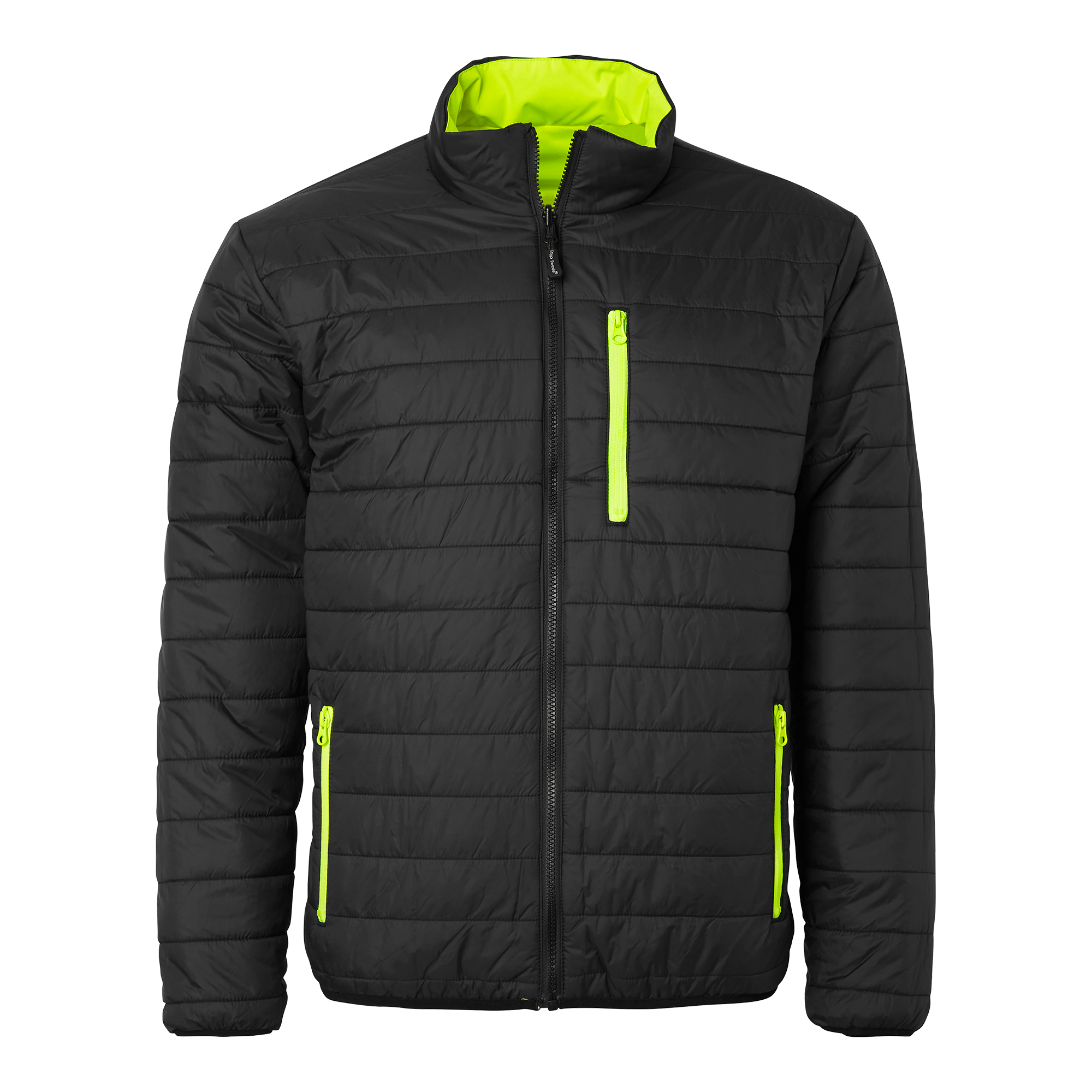 Vändbar quiltfodrad jacka från Top Swede med två framfickor med dragkedja. Starkt vattenavvisande och stretchigt yttertyg. Kan bäras som varseljacka eller svart jacka, båda sidor har fickor. Perfekt för arbete inom bygg och industri.