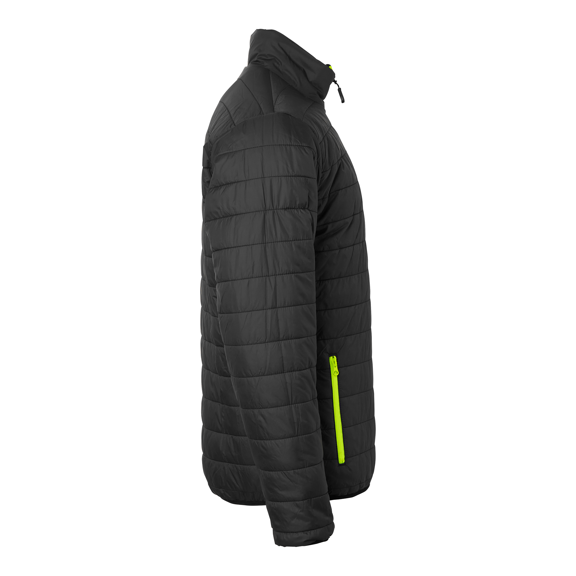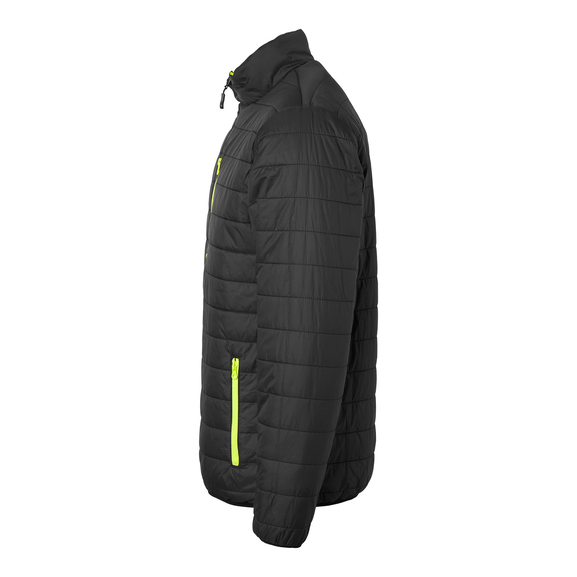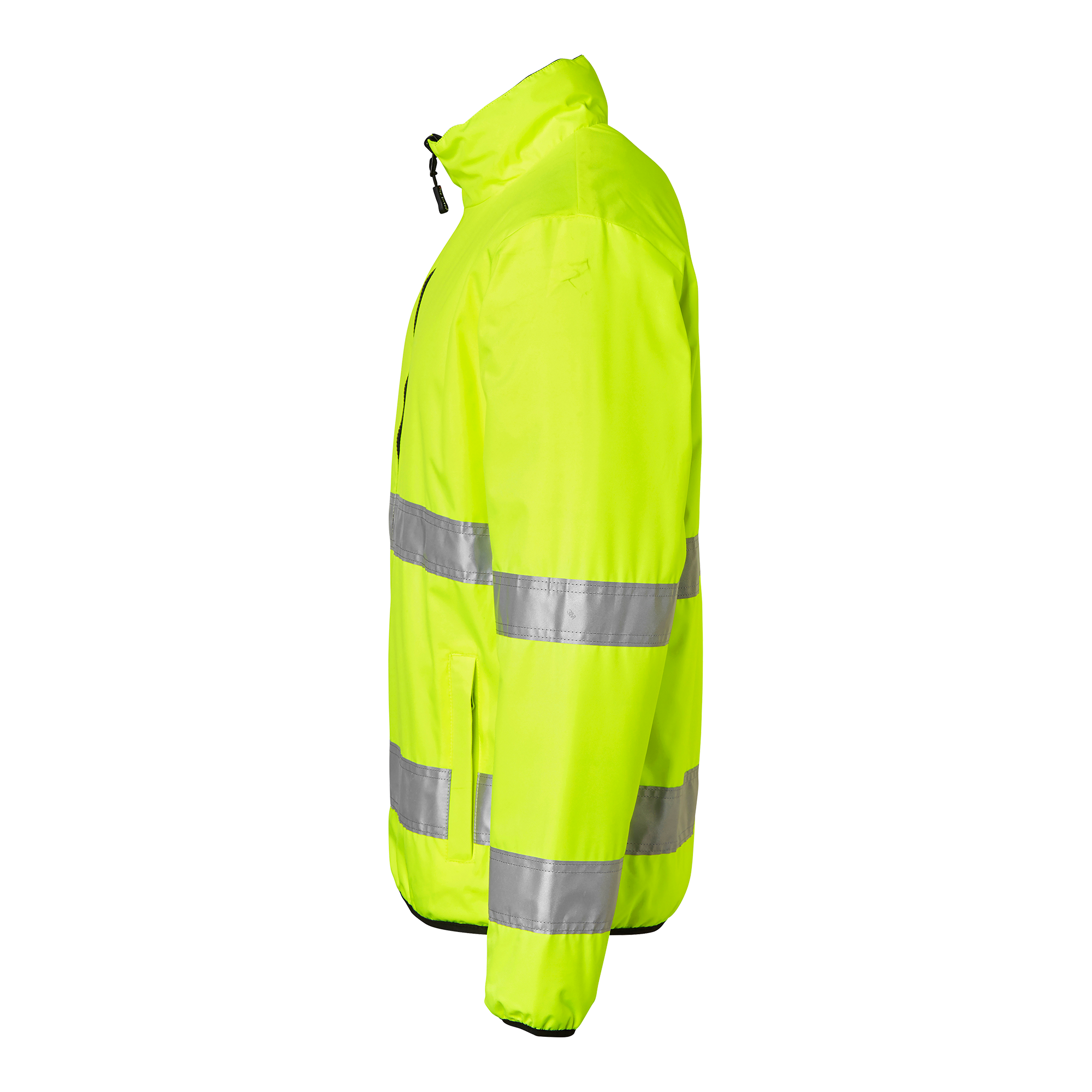 Vändbar quiltfodrad jacka från Top Swede med två framfickor med dragkedja. Starkt vattenavvisande och stretchigt yttertyg. Kan bäras som varseljacka eller svart jacka, båda sidor har fickor. Perfekt för arbete inom bygg och industri.