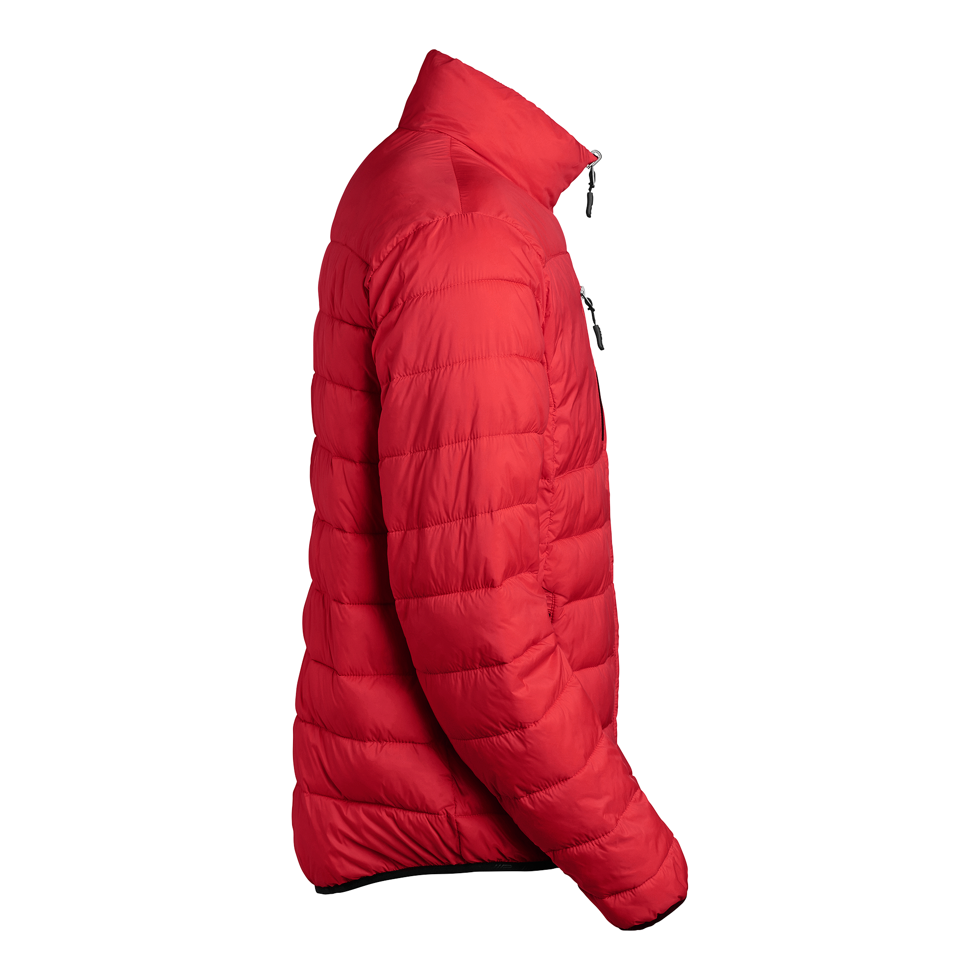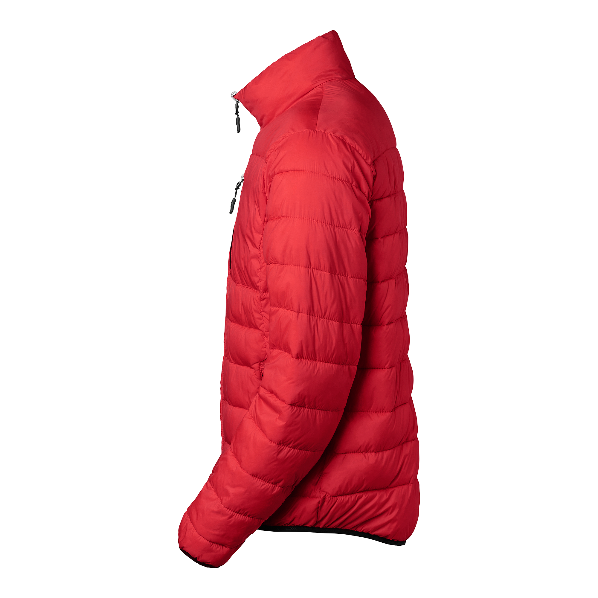 Modern lättviktsjacka med fuskdun och figurnära passform. Kan användas ensam eller fästas i Ames skaljacka som värmande foder. Smala kanaler håller dunet på plats. En bröstficka och två sidofickor. Elastiska band i nederkant och ärmslut.