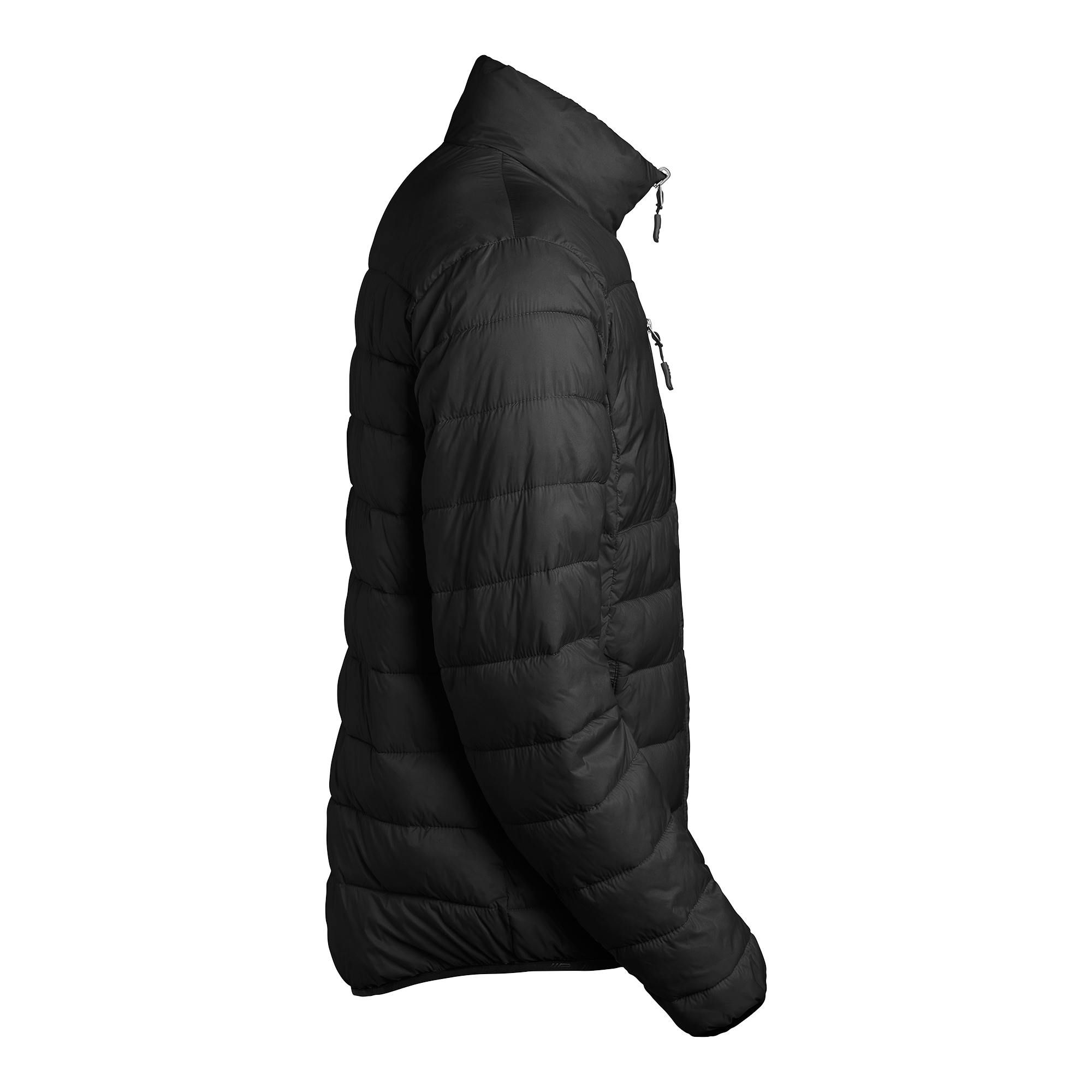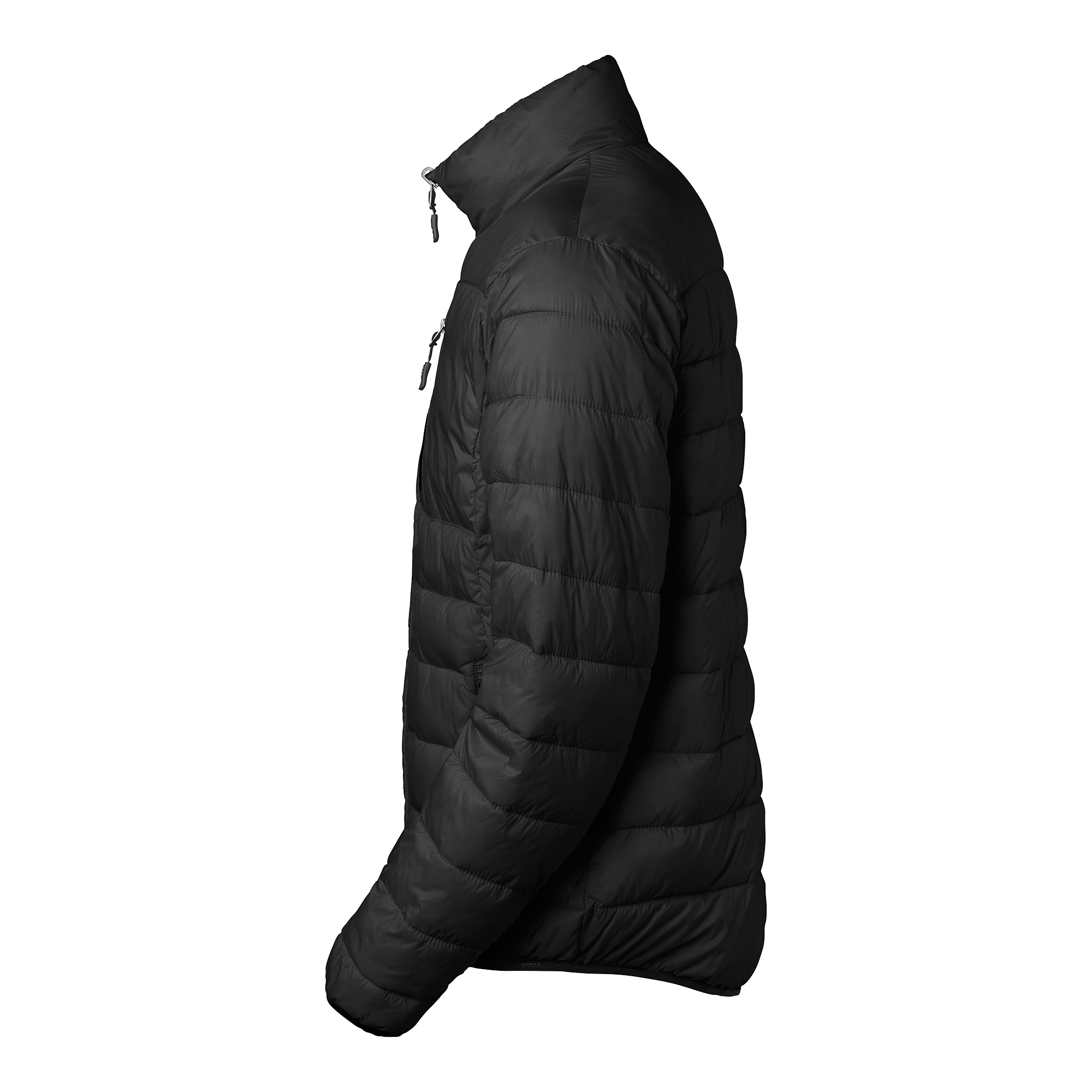 Modern lättviktsjacka med fuskdun och figurnära passform. Kan användas ensam eller fästas i Ames skaljacka som värmande foder. Smala kanaler håller dunet på plats. En bröstficka och två sidofickor. Elastiska band i nederkant och ärmslut.