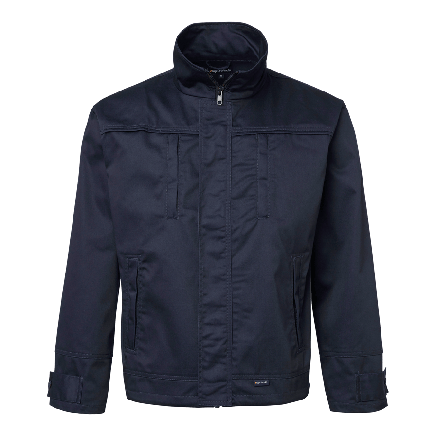 Midjejacka med två bröstfickor och två framfickor med dragkedja. Telefonficka i ena bröstfickan, utdragbar ID-kortsficka, justerbar ärmlinning och dragsko i nederkant. Perfekt för krävande arbetsmiljöer.