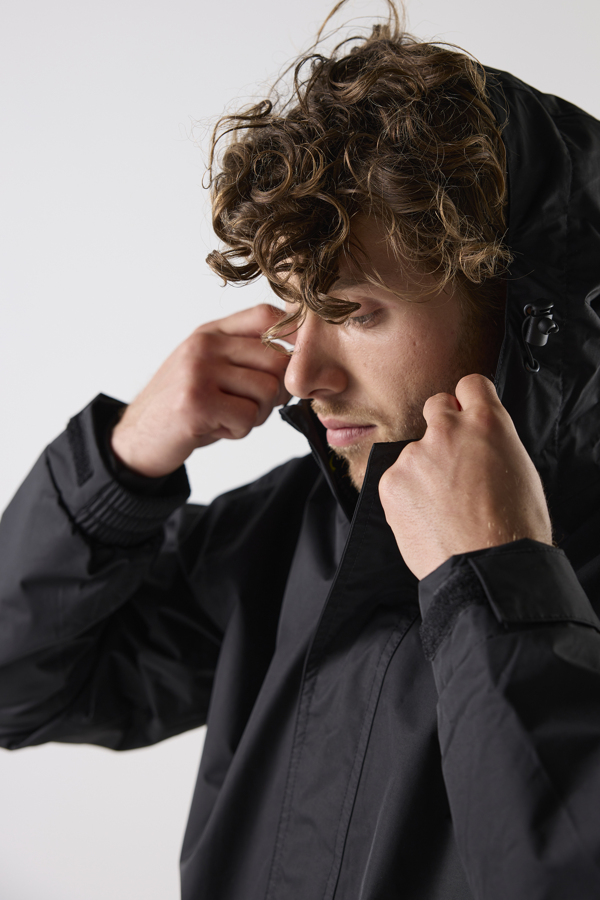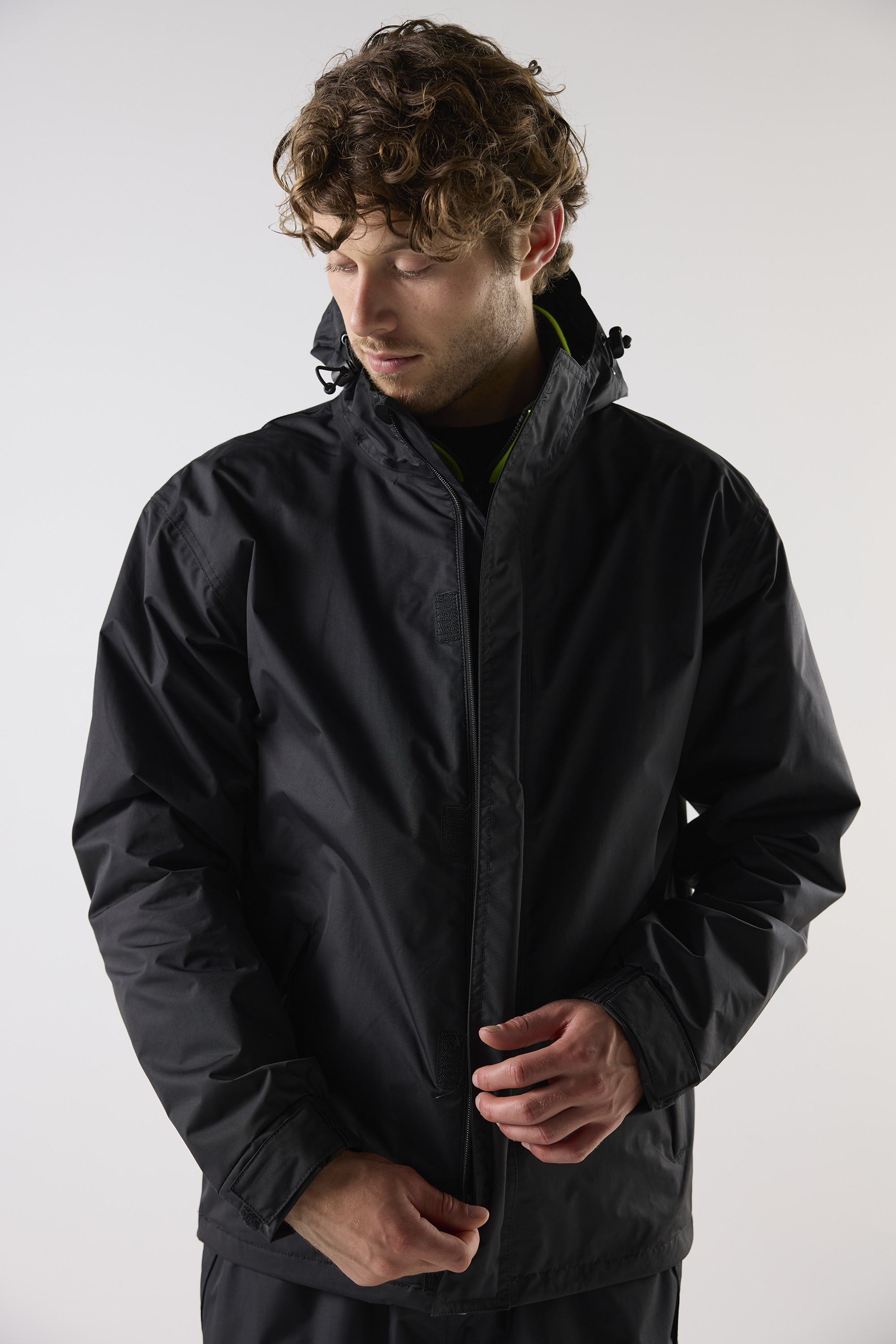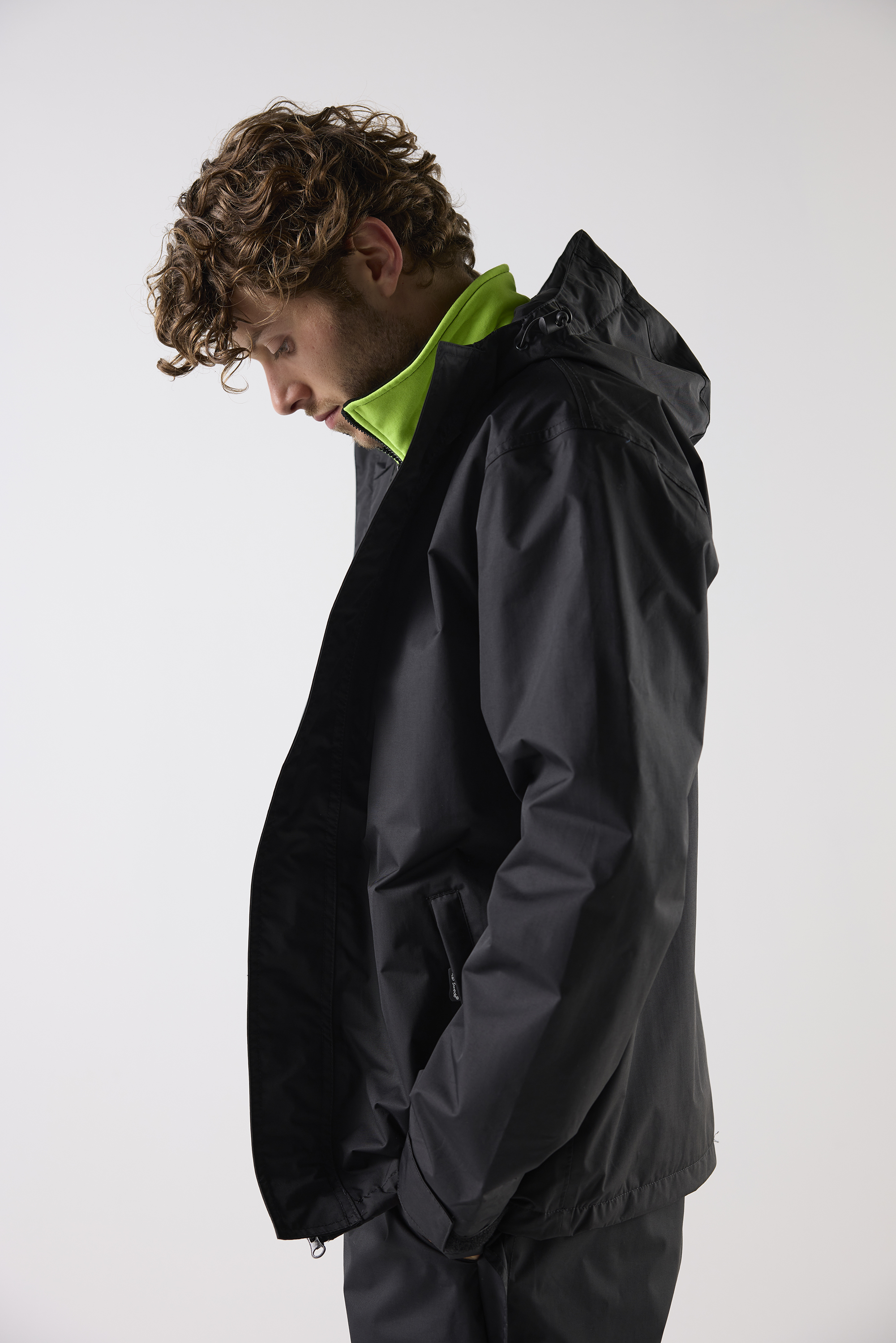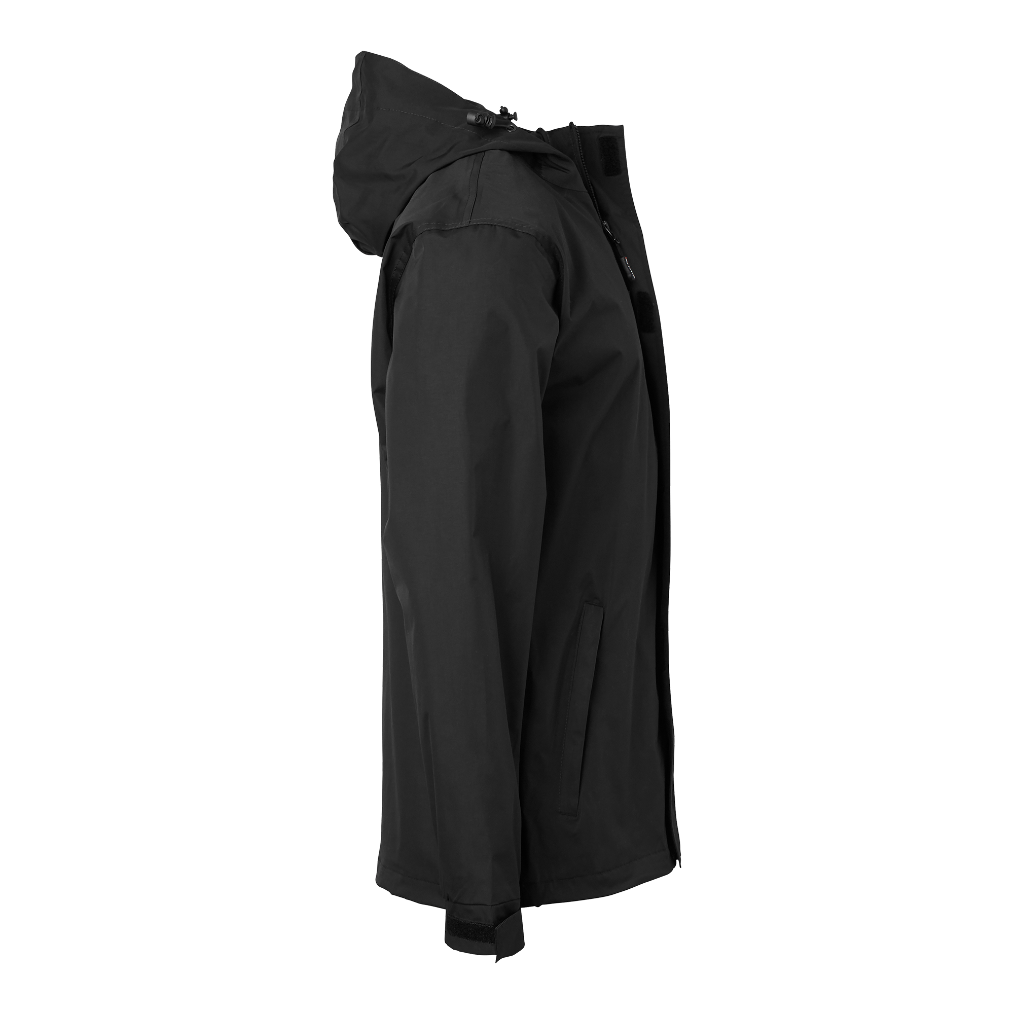 Vind och vattentät jacka med tejpade sömmar och god andningsförmåga. Hel dragkedja upp i krage med kedjeskydd. Två framfickor med dragkedja, justerbar huva, och reglerbart ärmslut.