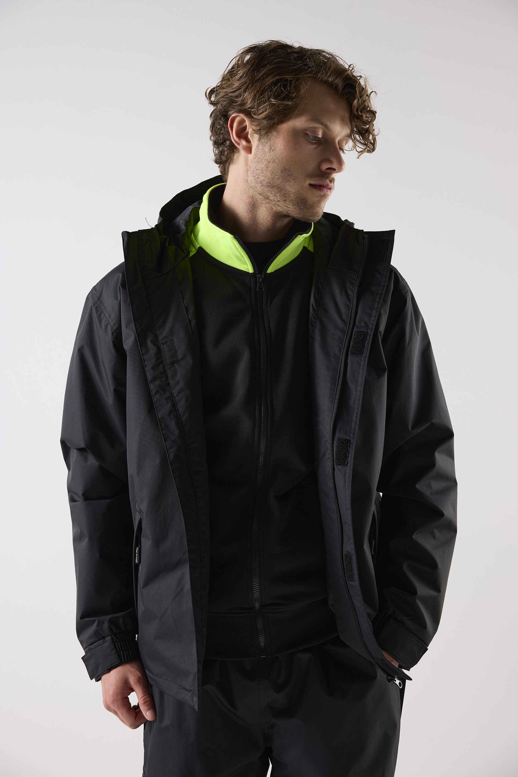 Upptäck Top Swede 174 Shell Jacket, en högpresterande jacka designad för yrkesverksamma inom bygg och industri. Denna jacka är både vind- och vattentät med tejpade sömmar som säkerställer maximalt skydd mot väder och vind. Jackan har en hel dragkedja som går ända upp i kragen med ett kedjeskydd och en överliggande slå med kardborreknäppning för extra skydd. Med två framfickor med dragkedja och en innerficka erbjuder jackan praktisk förvaring för verktyg och personliga tillhörigheter. Den justerbara huvan och reglerbara ärmslut ger optimal anpassning och komfort. Jackans goda andningsförmåga gör den bekväm att bära under hela arbetsdagen. Med sin moderna design och hållbara konstruktion är Top Swede 174 Shell Jacket idealisk för olika arbetsmiljöer där pålitligt skydd är avgörande. Välj Top Swede för arbetskläder som kombinerar funktionalitet, hållbarhet och stil – både på och utanför jobbet.
