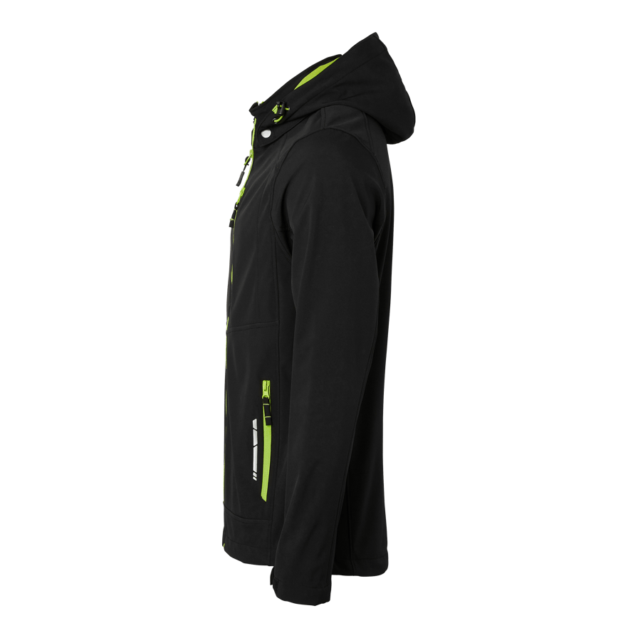 Softshelljacka i 3-lagers material med hel dragkedja och vindslå. Avtagbar och reglerbar huva, reflexdetaljer, bröstficka och två framfickor med dragkedja. Reglerbart ärmslut och dragsko i nederkant. Perfekt för krävande arbetsmiljöer.