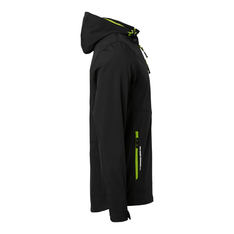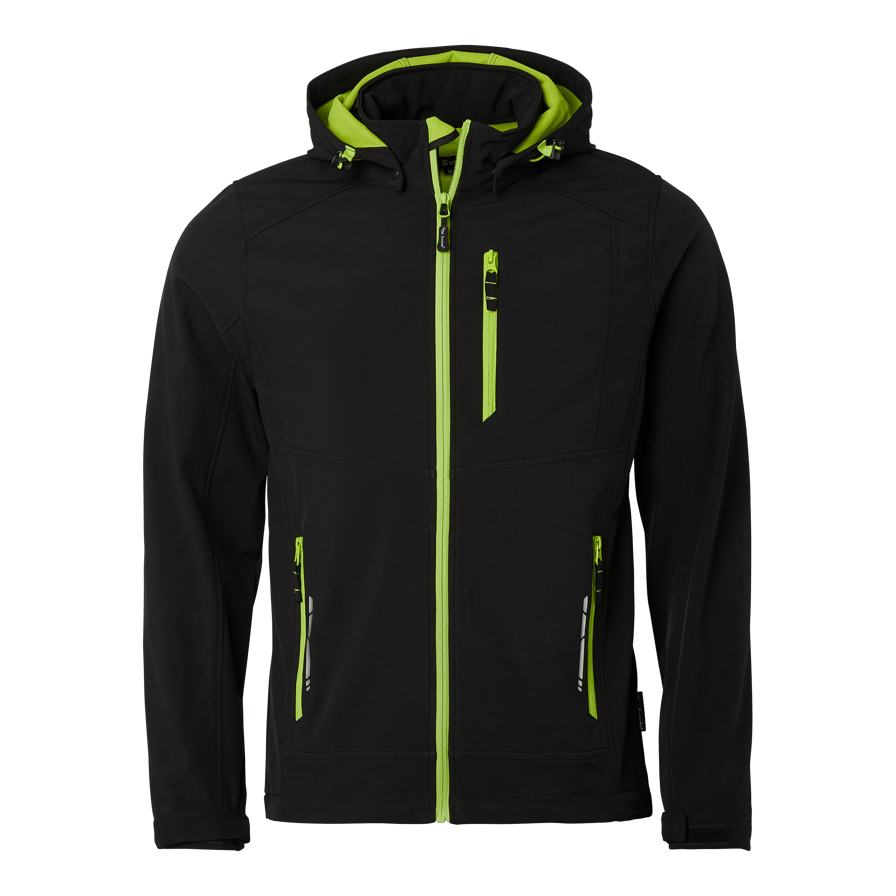 Softshelljacka i 3-lagers material med hel dragkedja och vindslå. Avtagbar och reglerbar huva, reflexdetaljer, bröstficka och två framfickor med dragkedja. Reglerbart ärmslut och dragsko i nederkant. Perfekt för krävande arbetsmiljöer.