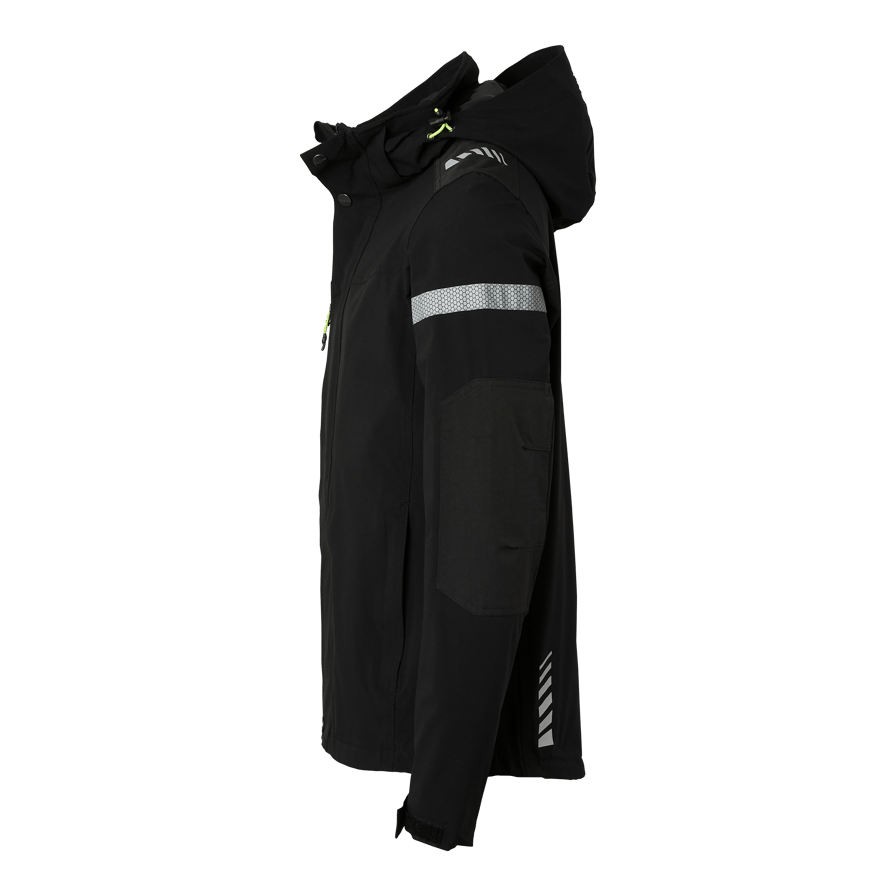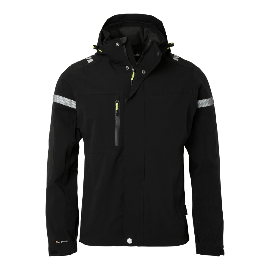 Vind- och vattentät skaljacka med tejpade sömmar och god andningsförmåga. Innehåller en bröstficka, innerficka/telefonficka, stor napoleonficka och avtagbar huva. Reflexdetaljer för ökad synbarhet och justerbara ärmslut och nederkant.