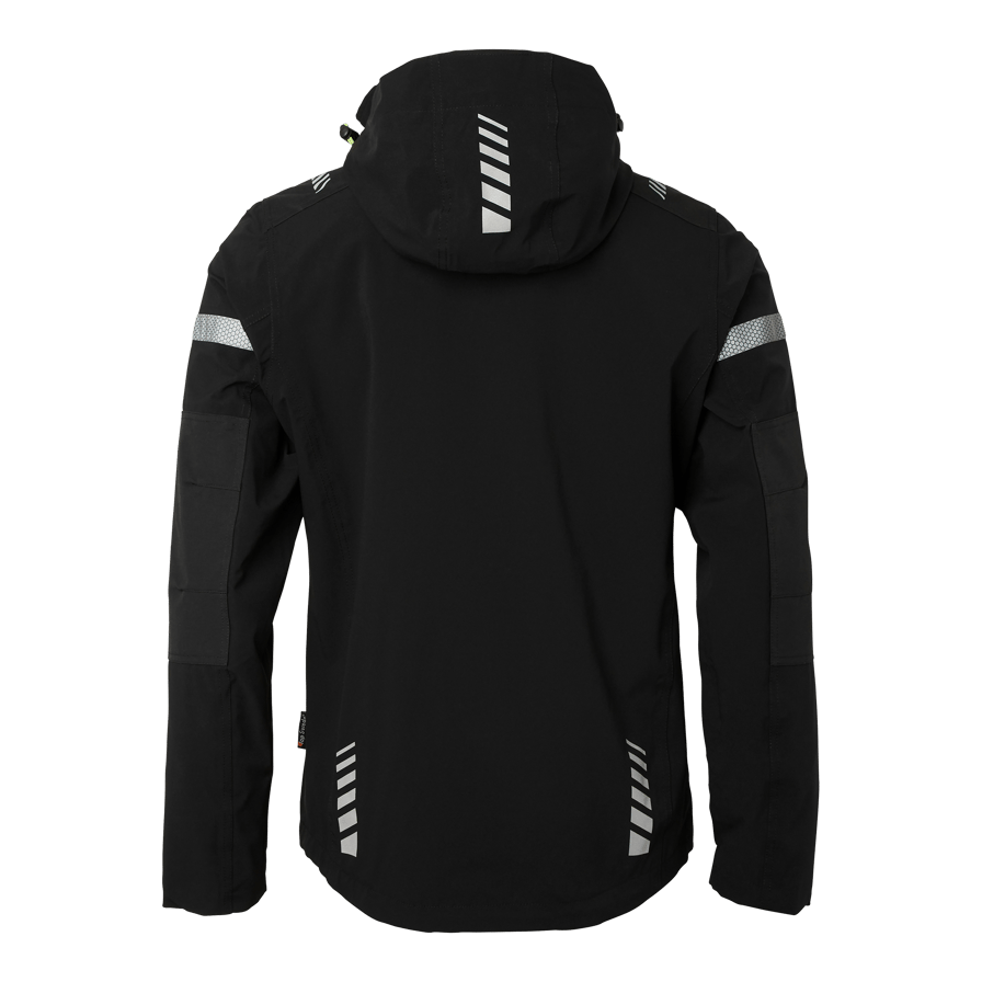 Vind- och vattentät skaljacka med tejpade sömmar och god andningsförmåga. Innehåller en bröstficka, innerficka/telefonficka, stor napoleonficka och avtagbar huva. Reflexdetaljer för ökad synbarhet och justerbara ärmslut och nederkant.