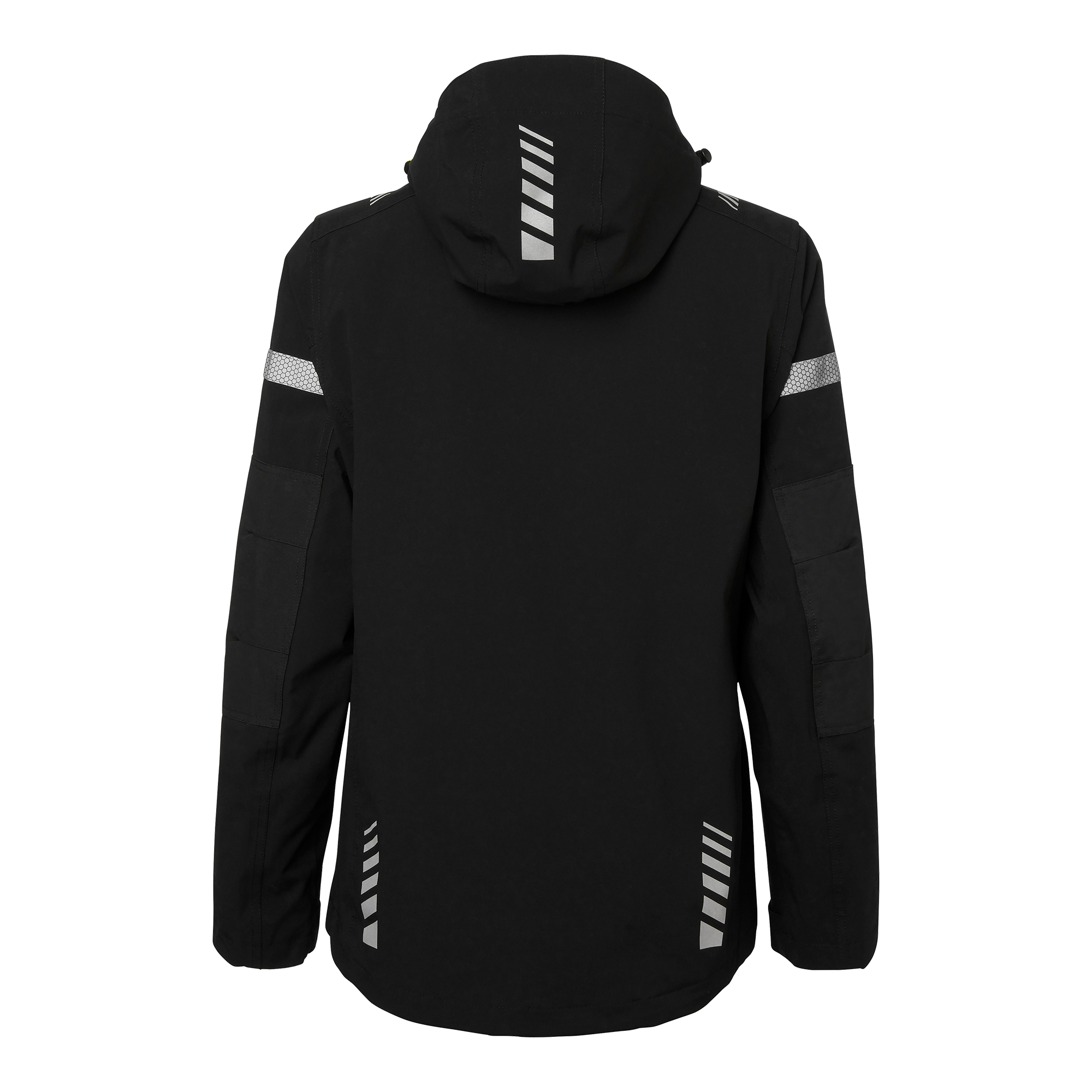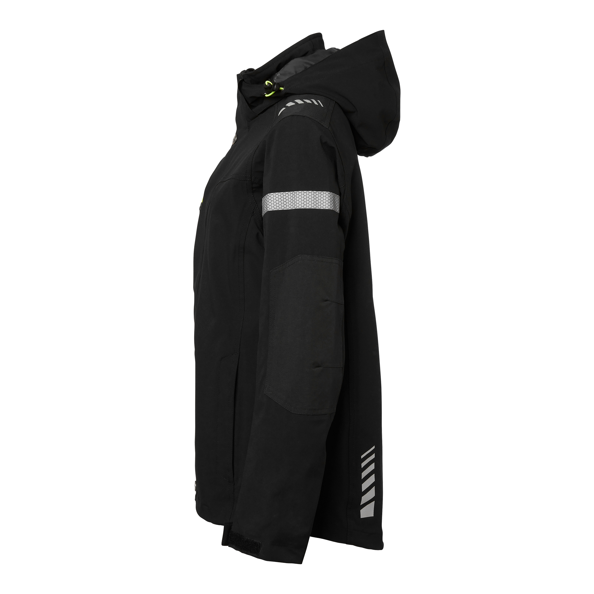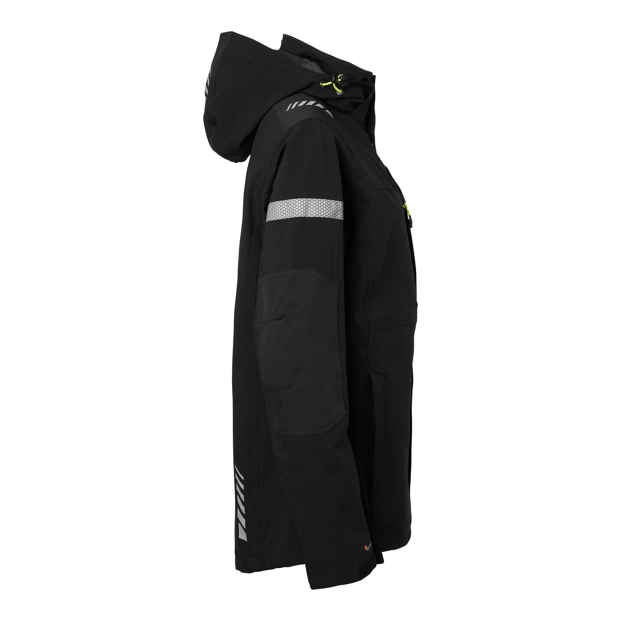 Vind- och vattentät skaljacka för dam med tejpade sömmar och god andningsförmåga. Utrustad med bröstficka, innerficka/telefonficka, två framfickor och en stor napoleonficka. Löstagbar huva och reflexdetaljer för ökad synbarhet. Justerbara ärmslut och nederkant.
