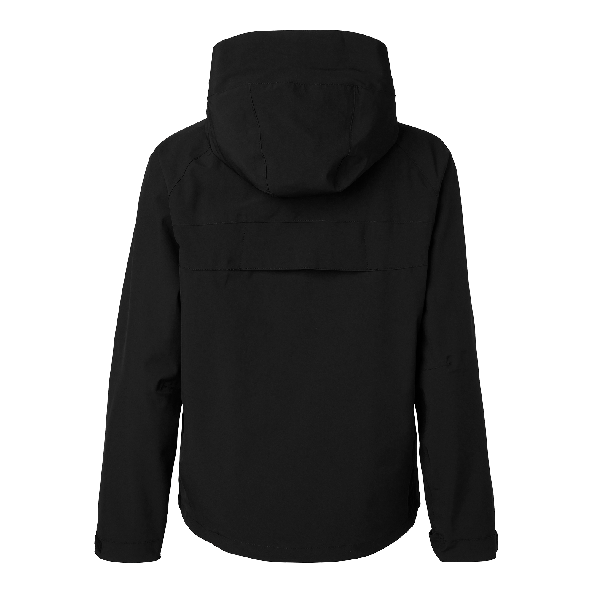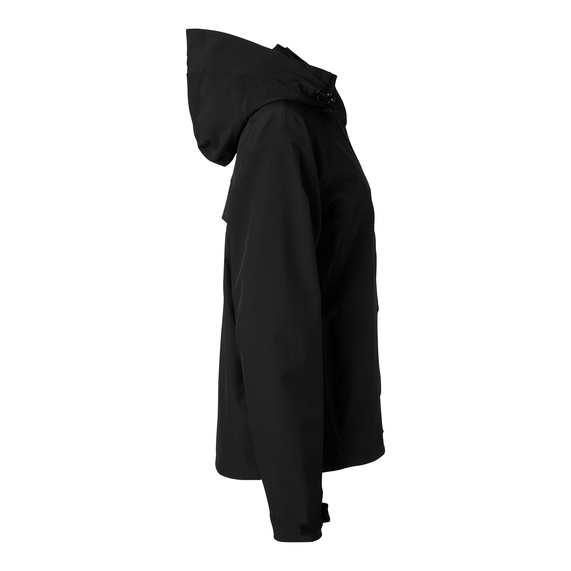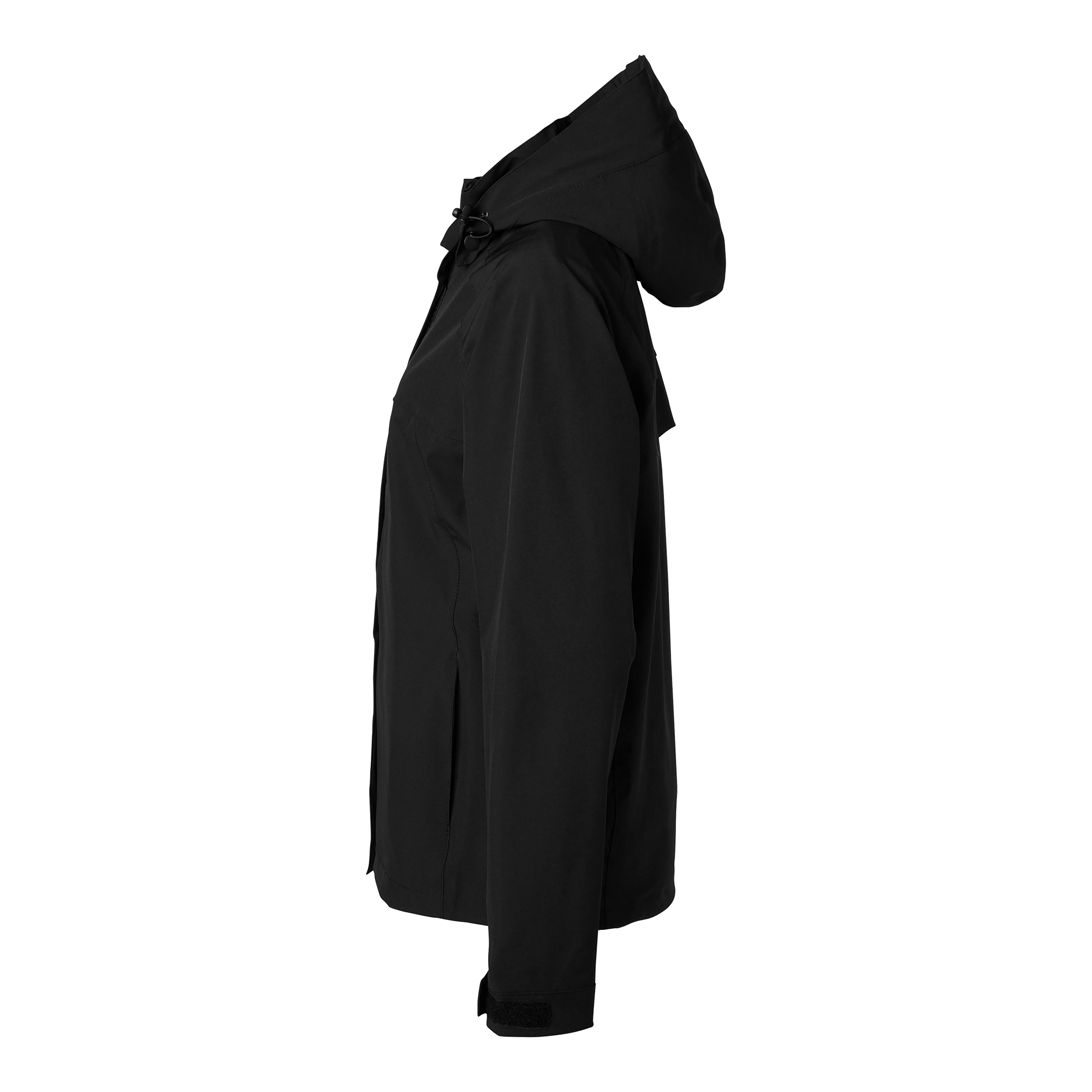 Figursydd allvädersjacka för dam med tejpade sömmar. Hel dragkedja med kedjeskydd och vindslå, två framfickor, invändig napoleonficka, ventilation i ryggen, dragsko i nederkant, reglerbara ärmslut och löstagbar huva. Perfekt för alla väder.