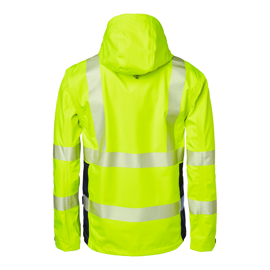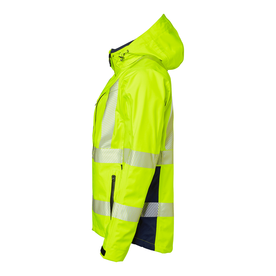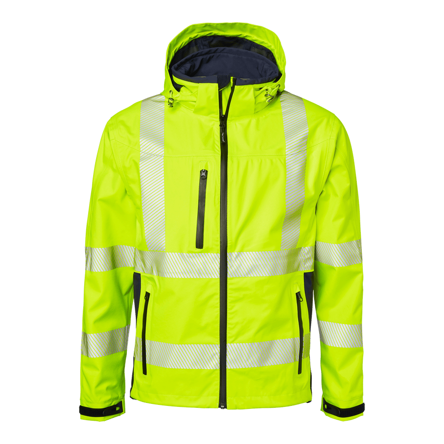 Upptäck Top Swedes 6718 Shell Jacket, en premium skaljacka designad för yrkesverksamma inom bygg och industri som kräver pålitligt skydd och hög synlighet i alla väderförhållanden. Tillverkad i 3-lagersmaterial, är denna jacka både vind- och vattentät med tejpade sömmar, vilket garanterar ett effektivt skydd mot regn och vind. Den har en imponerande andasfunktion som håller dig torr och bekväm under intensiva arbetsdagar. Jackan är utrustad med en vattentät dragkedja som går hela vägen upp i kragen med kedjeskydd och vindskydd under dragkedjan. För extra funktionalitet finns en bröstficka med vattentät dragkedja och knäppanordning för ID-kortsficka, samt två framfickor med vattentäta dragkedjor. Den justerbara och avtagbara huvan erbjuder flexibilitet beroende på väderförhållandena. Dragskon i nederkanten och de reglerbara ärmsluten säkerställer en perfekt passform som håller värmen inne och kylan ute. Välj 6718 Shell Jacket för en kombination av högsta komfort, funktionalitet och hållbarhet, perfekt för de mest krävande arbetsmiljöerna.