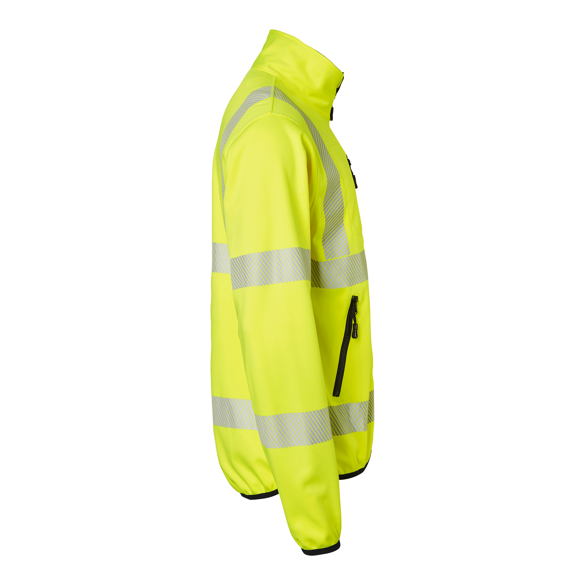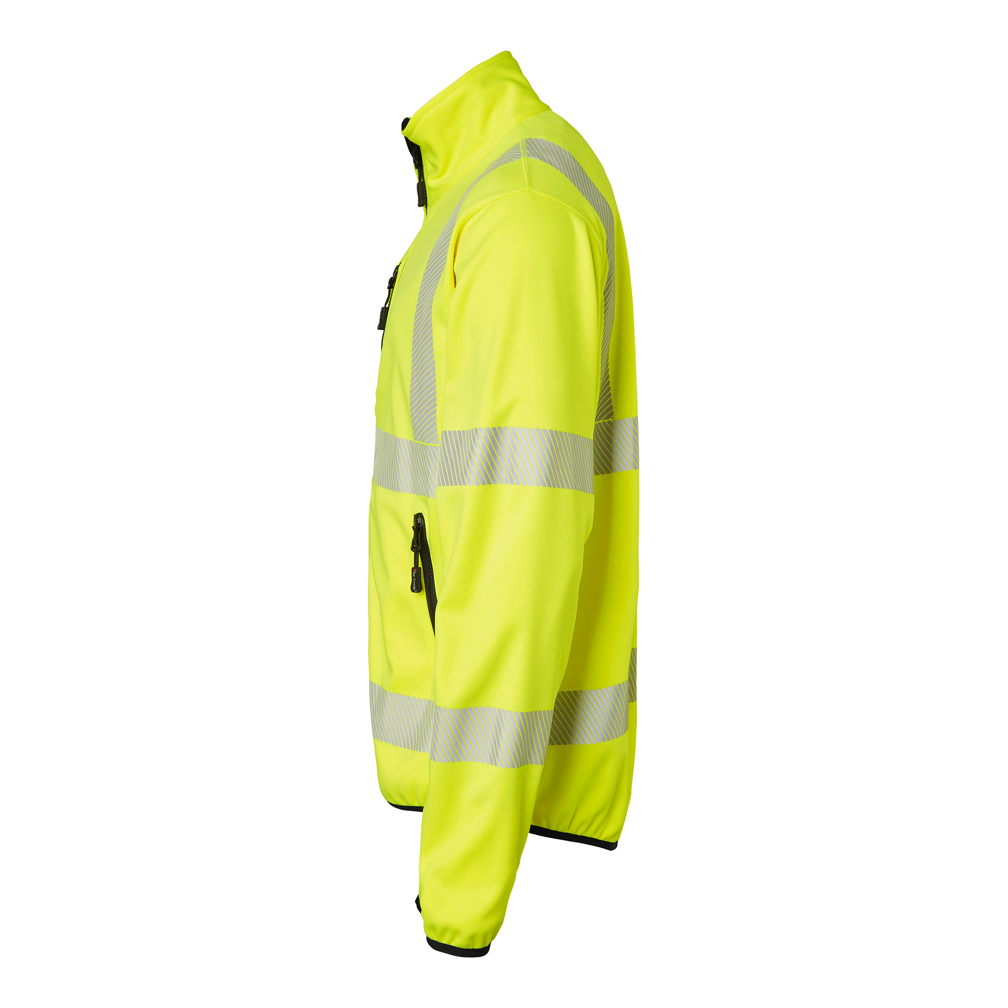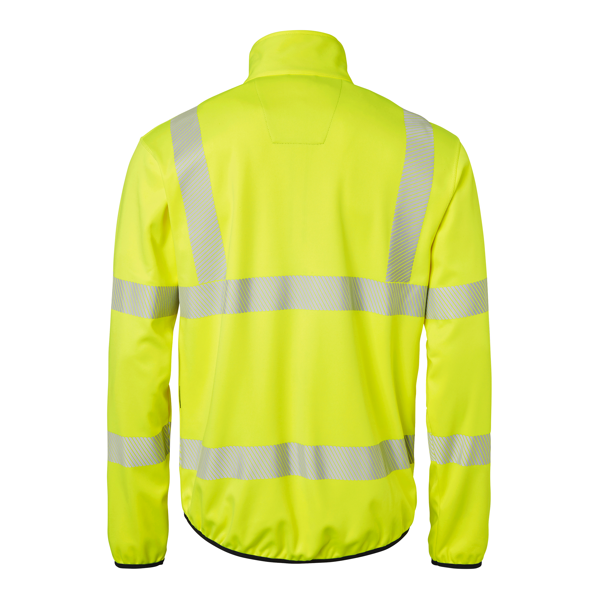 Softshelljacka med hel dragkedja och kedjeskydd. Utrustad med en bröstficka/telefonficka och två framfickor med dragkedja. Har elastiskt ärmslut med tumgrepp och elastisk nederkant. Perfekt för hög synlighet och komfort.