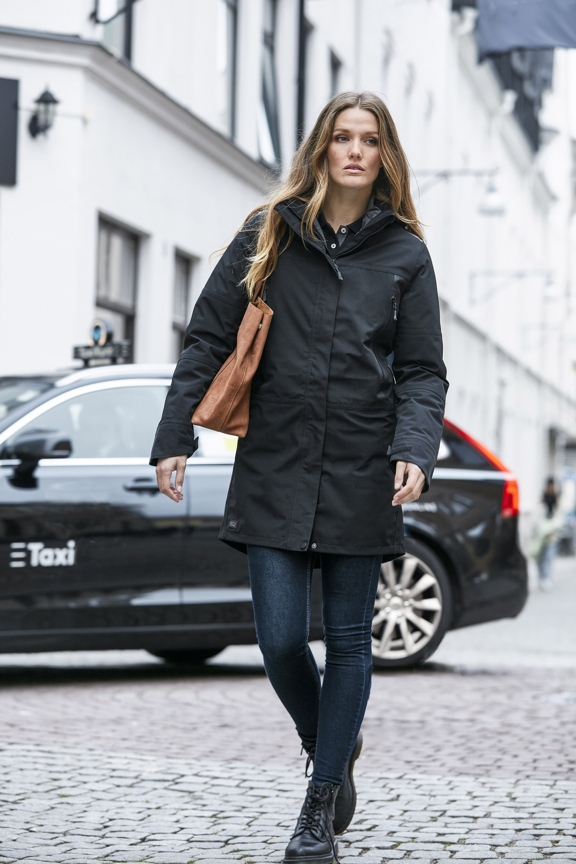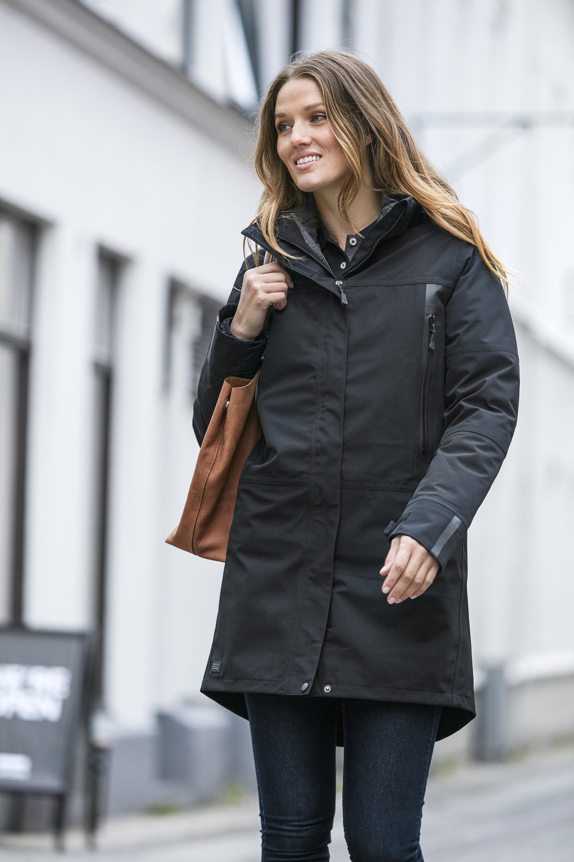 Vind- och vattenavvisande parkas i slitstarkt material med tejpade sömmar. Dampassform med två stora sidofickor, avtagbar huva och justerbara ärmslut. Reflexdetaljer på axlar, rygg och ärmslut. Kombinerbar med övriga plagg från "The Mix Concept".