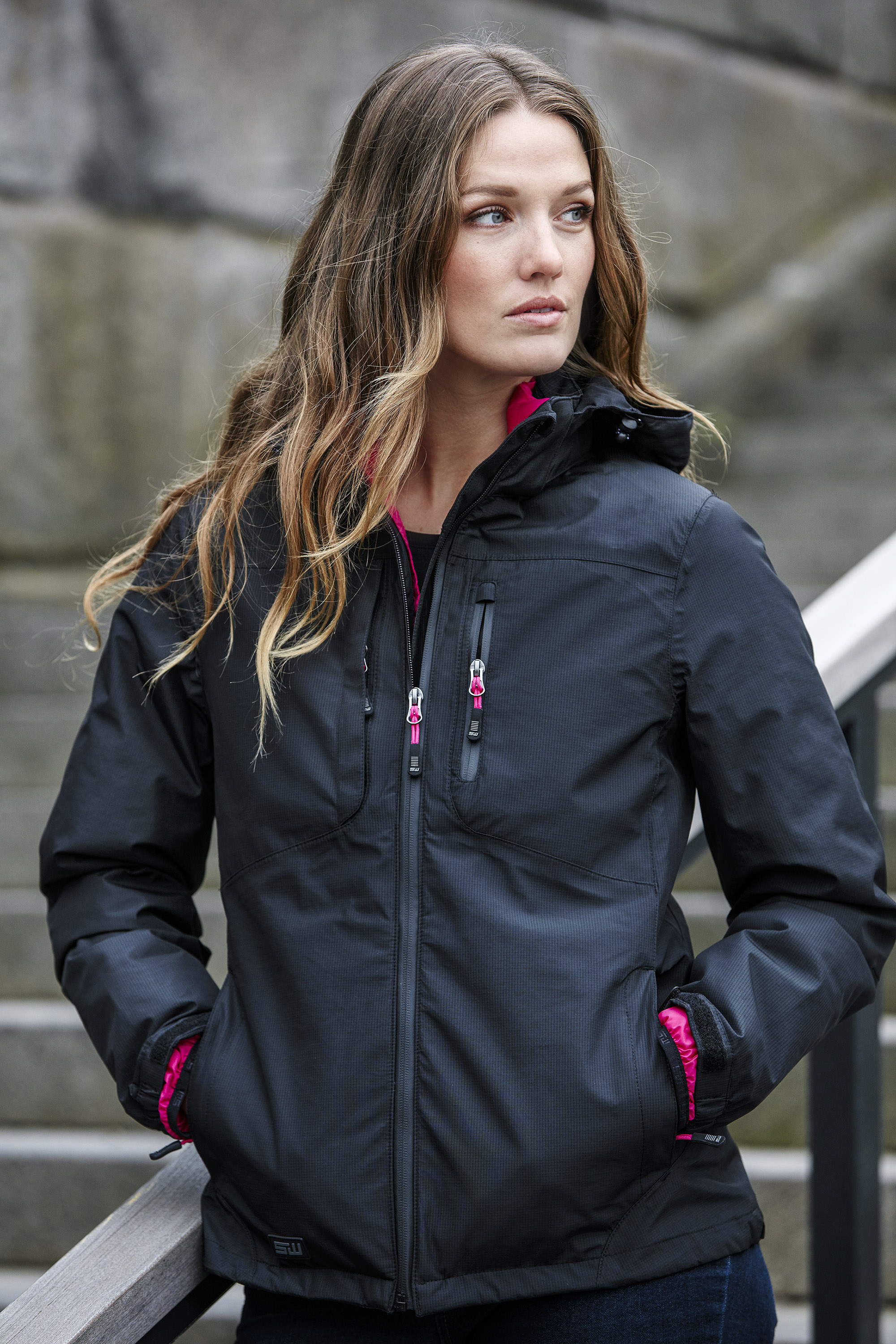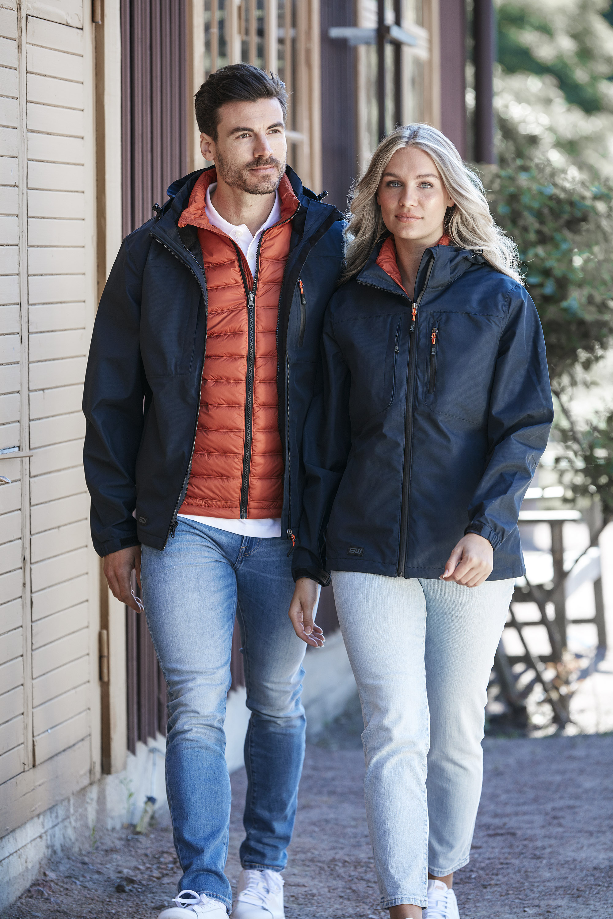 Praktisk och allsidig vind- och vattenavvisande skaljacka i ripstop-polyester med tejpade sömmar. Fin dampassform med justerbar och avtagbar huva, dragsko i nederkant och justerbara ärmslut. Kombinerbar med andra plagg från "The Mix Concept".