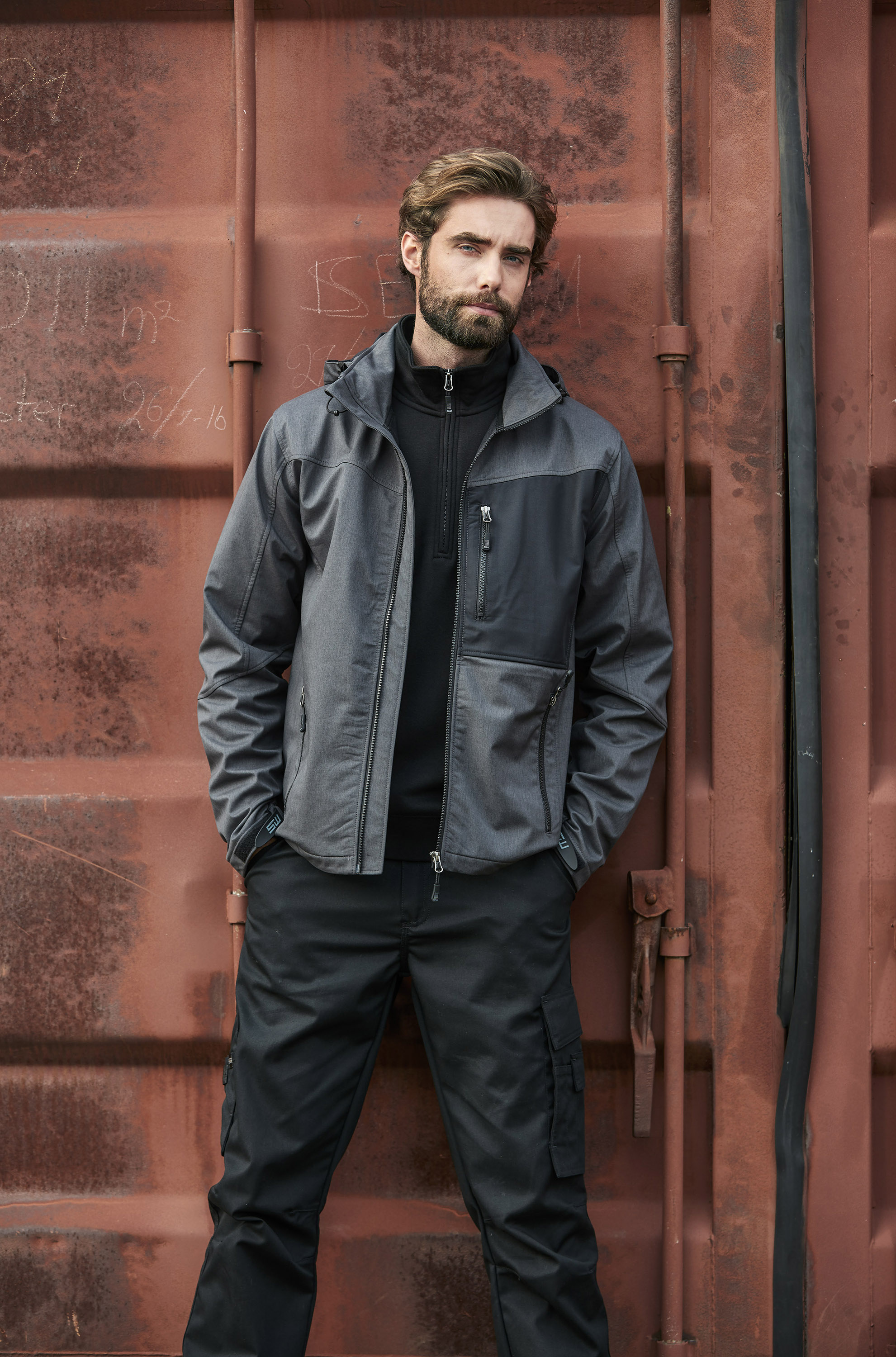 Vattenavvisande och vindtät softshelljacka med andningsfunktion. Justerbara ärmslut och reflexdetalj på huvan. Bröstficka i avvikande färg samt två rymliga sidofickor med dragkedja.