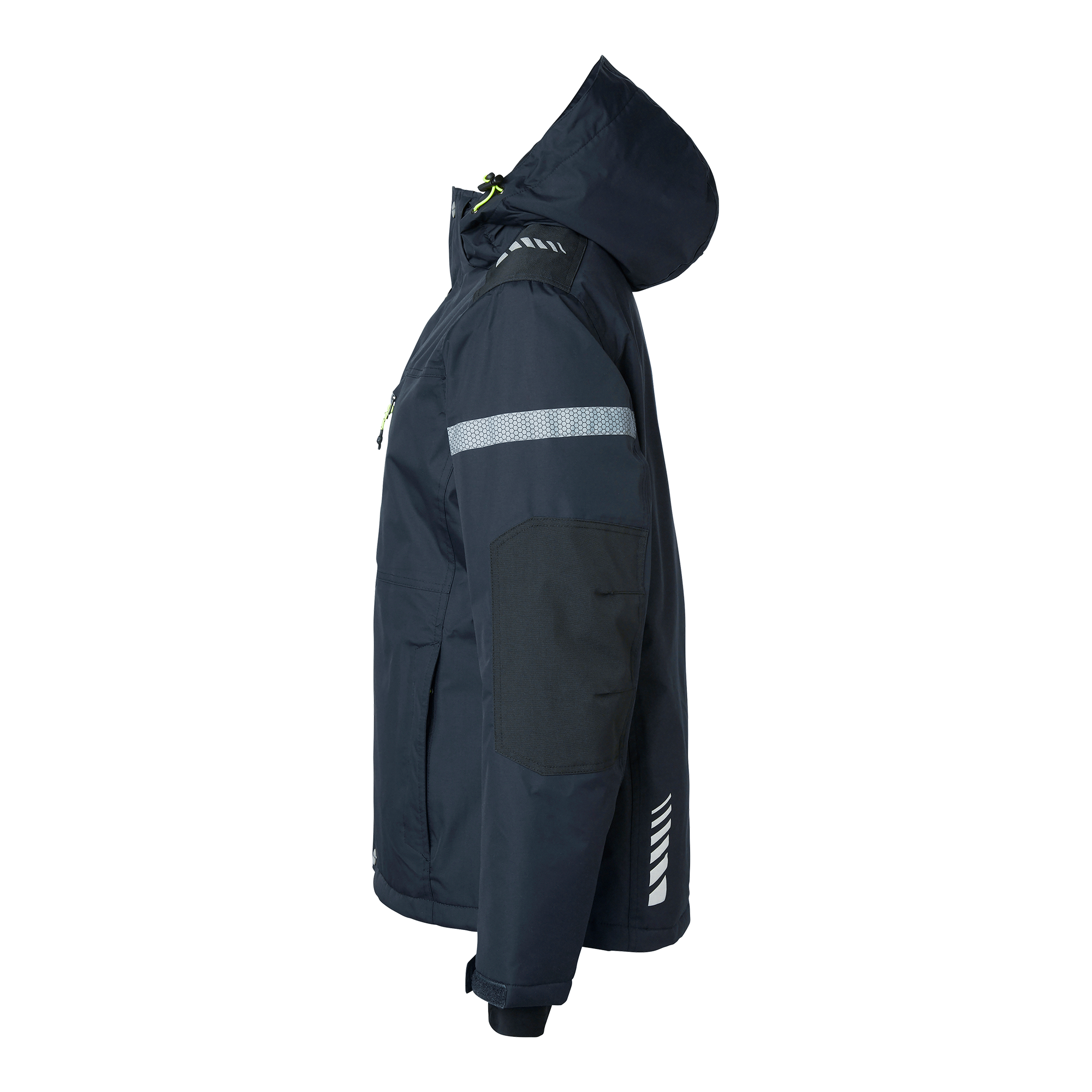Vind- och vattentät vinterjacka med tejpade sömmar, fodrad med quilt och material som ger värme och ventilation. Bröstficka med vattentät dragkedja, innerficka, napoleonficka och sidofickor med dragkedjor. Löstagbar huva, reflexdetaljer, reglerbart ärmslut och nederkant.