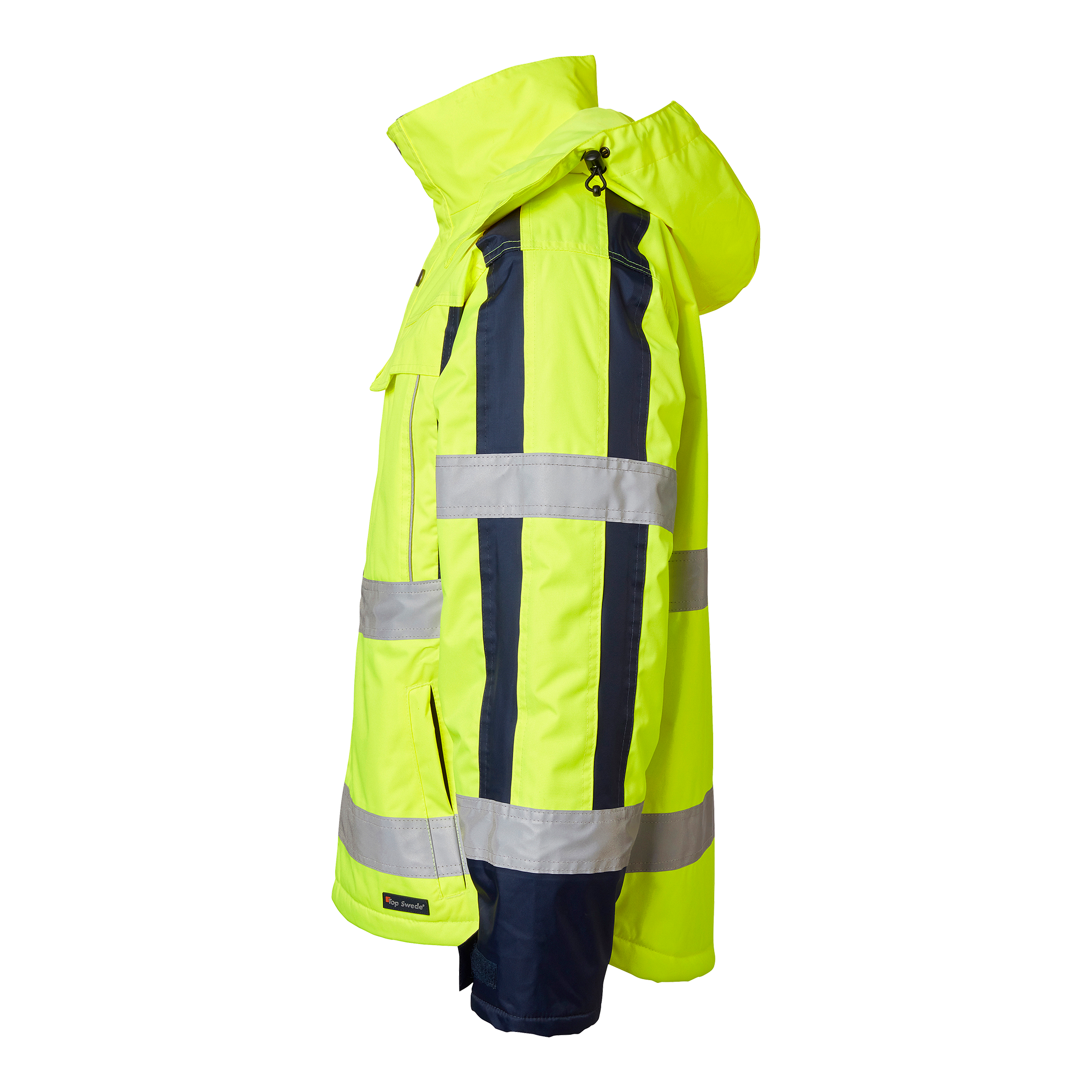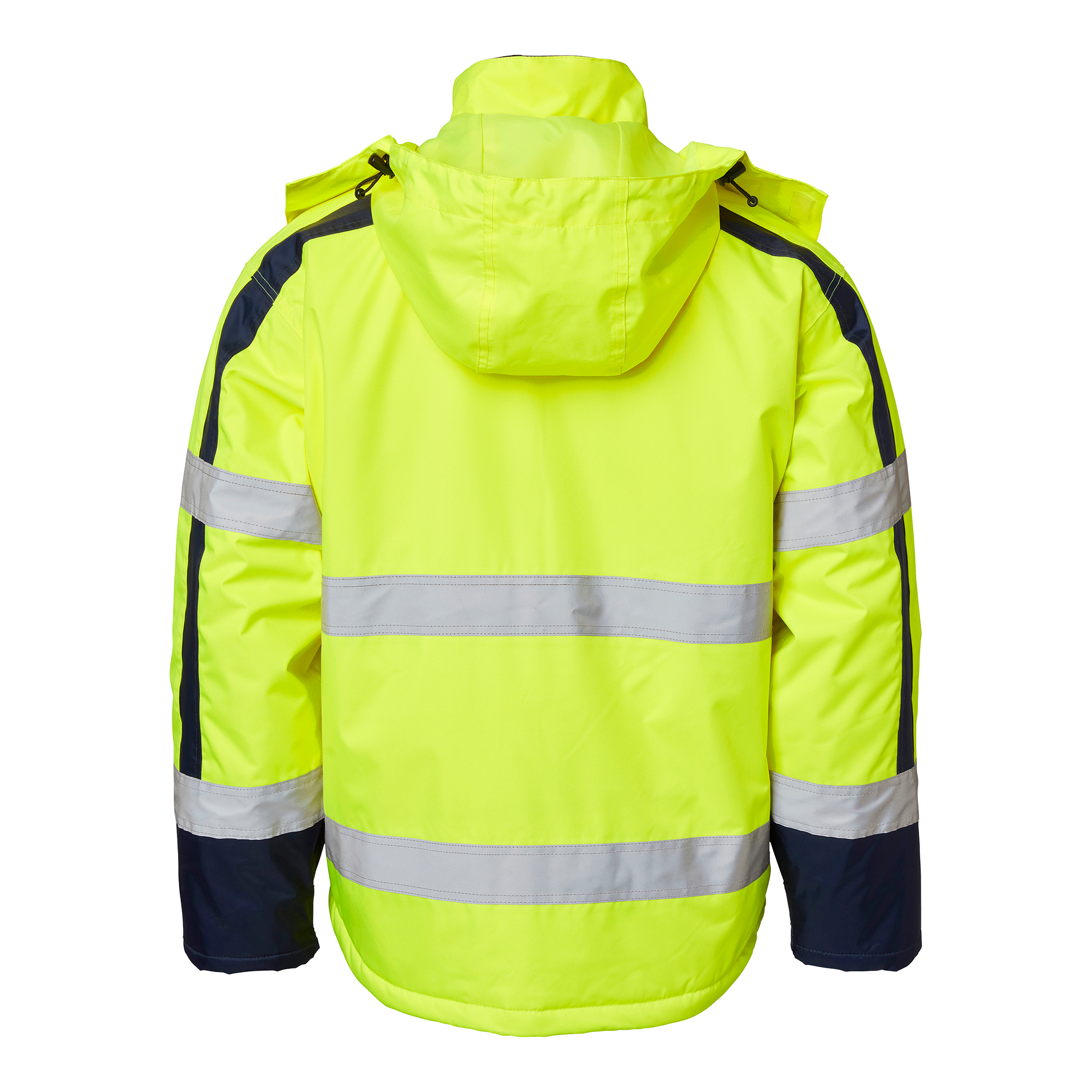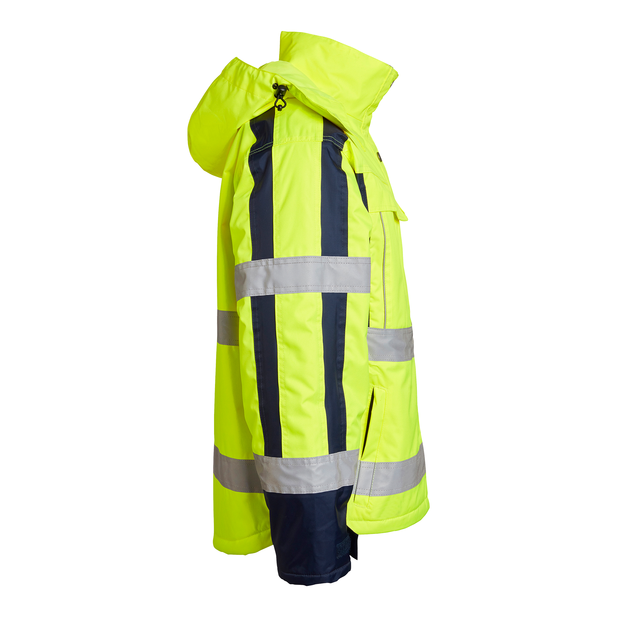 Vind- och vattentät jacka med tejpade sömmar och god andningsförmåga. Fodrad med quilt och fleece i kragen. Utrustad med flera fickor, reglerbar huva och ärmslut samt dragsko i nederkant. Perfekt för arbete i alla väder.