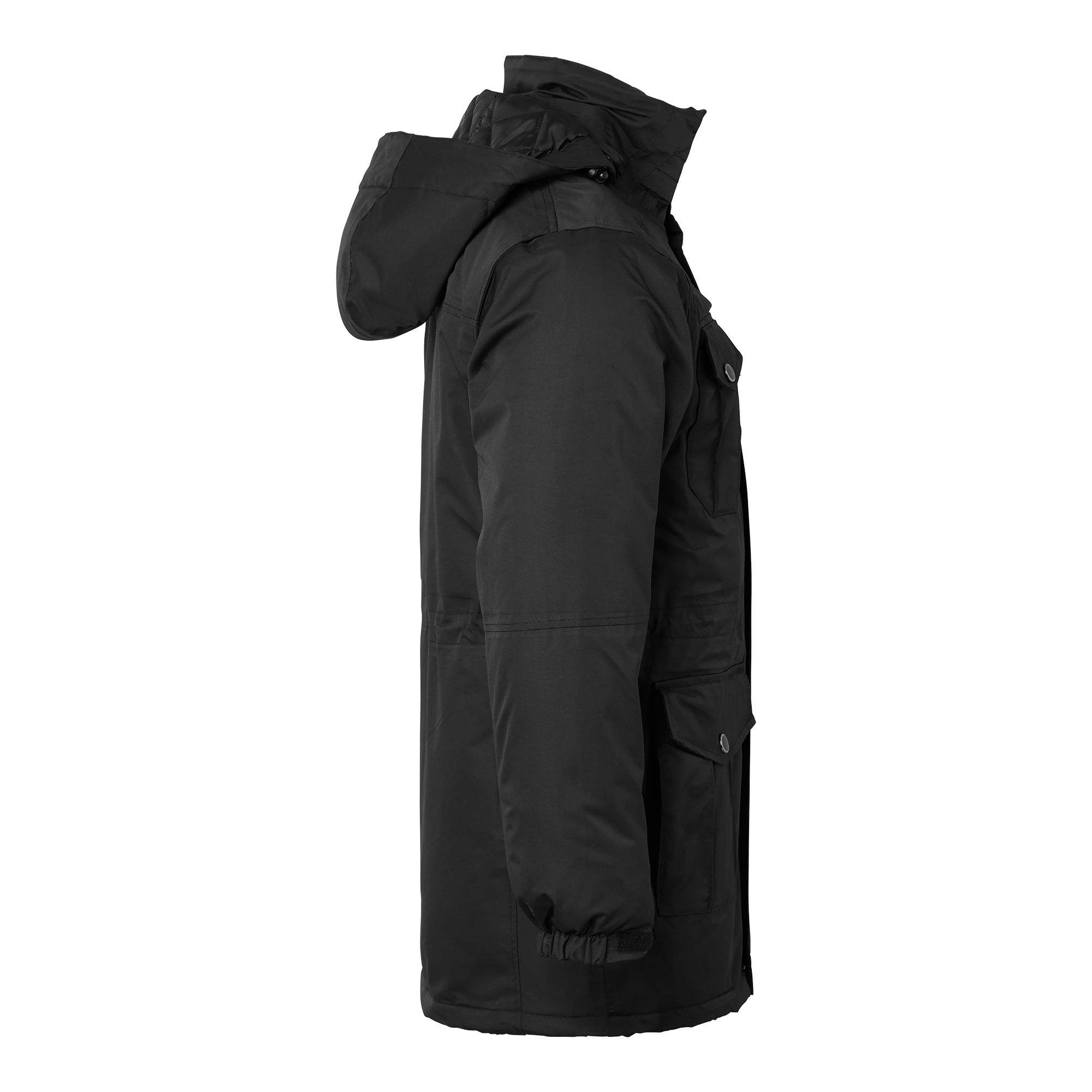 Top Swede 6020 Parka w är den perfekta lösningen för kalla och blöta dagar. Denna vindtäta och vattentäta parkas med tejpade sömmar säkerställer att du håller dig torr och varm, oavsett väderförhållanden. Med quiltfodring och en löstagbar, fodrad huva erbjuder den ultimat värmeisolering och flexibilitet. Parkasen har har en hög krage, två framfickor med lock och dragkedja, två bröstfickor, en ärmficka med dragkedja, samt flera innerfickor, inklusive en telefonficka och kartficka, för optimal förvaring. Med reglerbara ärmslut, dragsko i midjan och nederkanten, samt mudd med tumgrepp, kan du anpassa passformen för maximalt skydd och komfort. Denna parkas kombinerar funktion och stil, vilket gör den idealisk för både arbete och fritid.