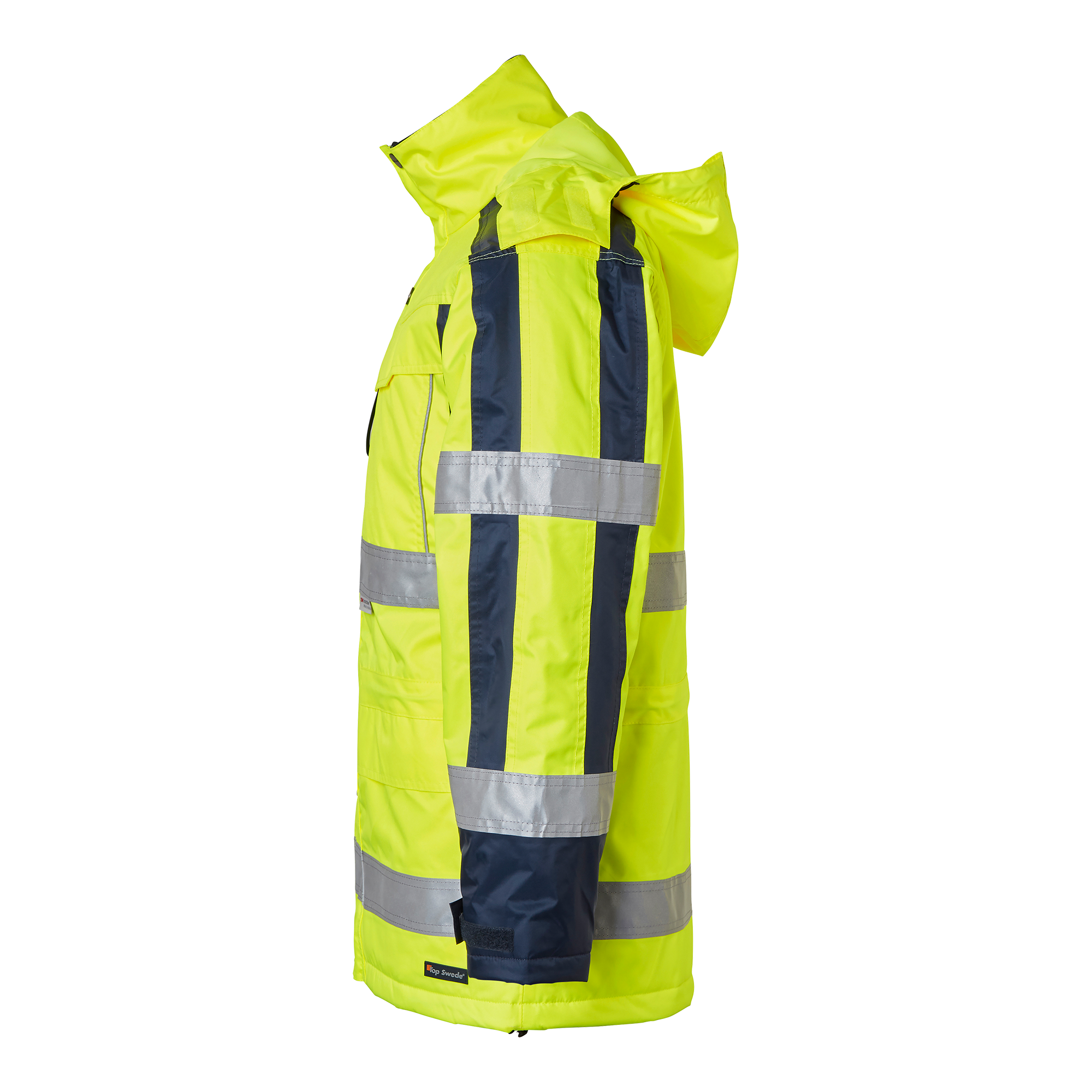Upptäck Top Swedes 6317 Parka, en högpresterande vinterparkas designad för att ge maximal värme, komfort och synlighet i krävande arbetsmiljöer. Denna parkas är både vind- och vattentät med tejpade sömmar, vilket garanterar skydd mot de mest extrema väderförhållandena. Med en god andningsförmåga och quiltfodring, samt fleece i kragen, håller den dig varm och bekväm hela arbetsdagen. Parkasen har en mängd praktiska fickor: två bröstfickor med lock, två bröstfickor med dold dragkedja, en napoleonficka med dragkedja under knappslån, två framfickor med lock och två innerfickor, varav en med telefonficka. Den justerbara huvan kan döljas i kragen när den inte används. Ärmsluten är justerbara med kardborreband och dragskon i midjan och nederkanten säkerställer en perfekt passform. En uttagbar ID-kortsficka som kan döljas i fickan ökar funktionaliteten. Välj 6317 Parka för en kombination av hållbarhet, funktionalitet och komfort, idealisk för yrkesverksamma inom bygg och industri som behöver pålitligt skydd i alla väderförhållanden.