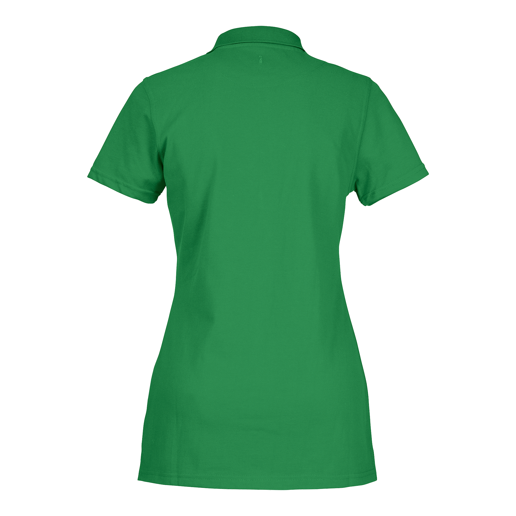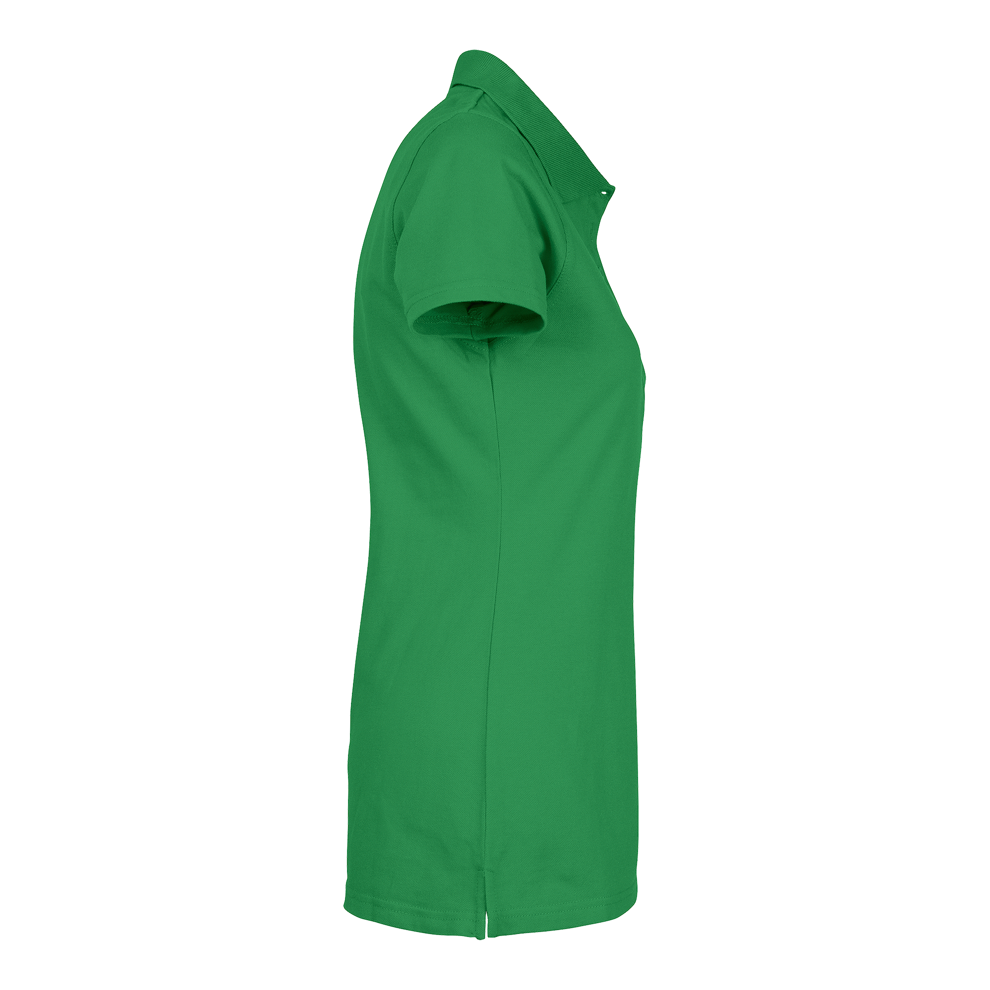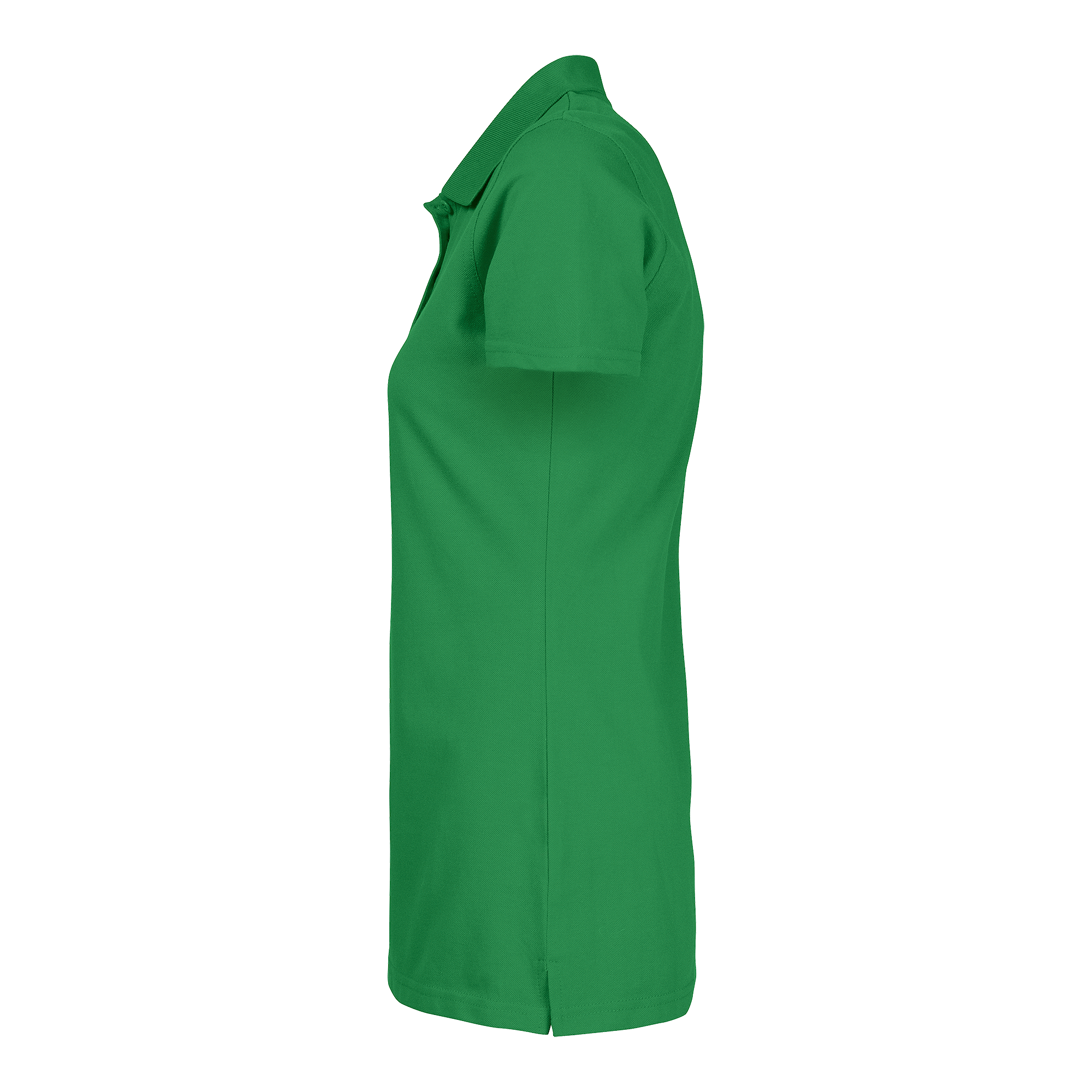 Kortärmad figurnära piké i dampassform med 5 knappar i smal knappslå. Halvmåne i nacken med diskret brodyr och sprund i sidosömmen för extra komfort.