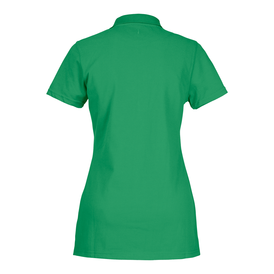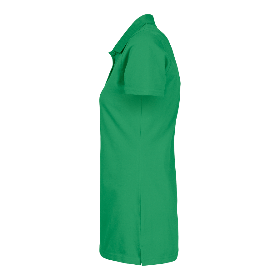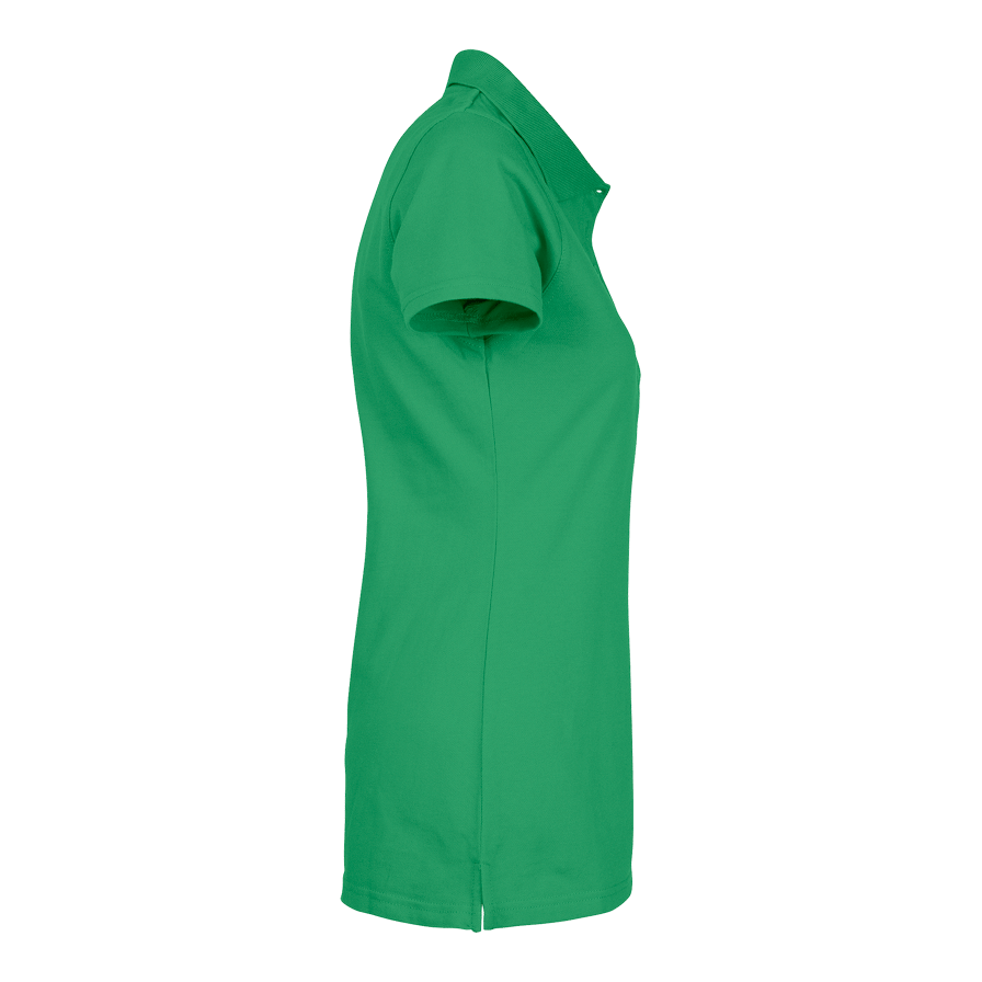 Kortärmad figurnära piké i dampassform med 5 knappar i smal knappslå. Halvmåne i nacken med diskret brodyr och sprund i sidosömmen för extra komfort.