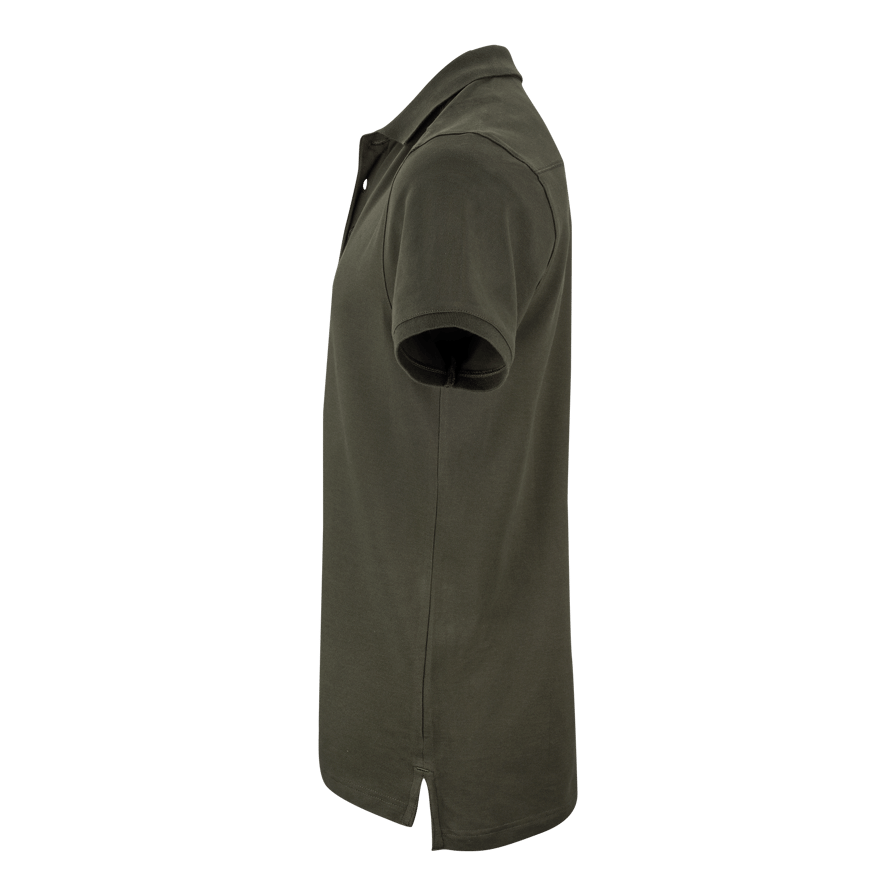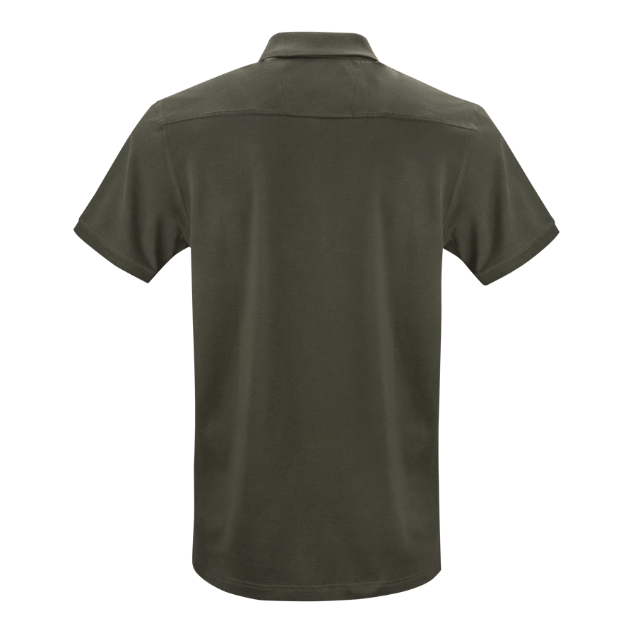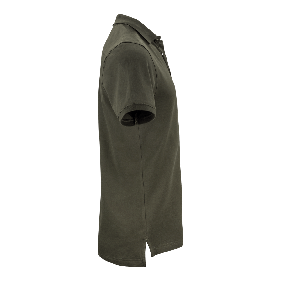 GOTS-certifierad piké i ekologisk Fairtrade-bomull och elastan med modern passform. Knappar av återvunna knapprester, med flatlockstickningar och invändigt nacktryck med miljömärkning.