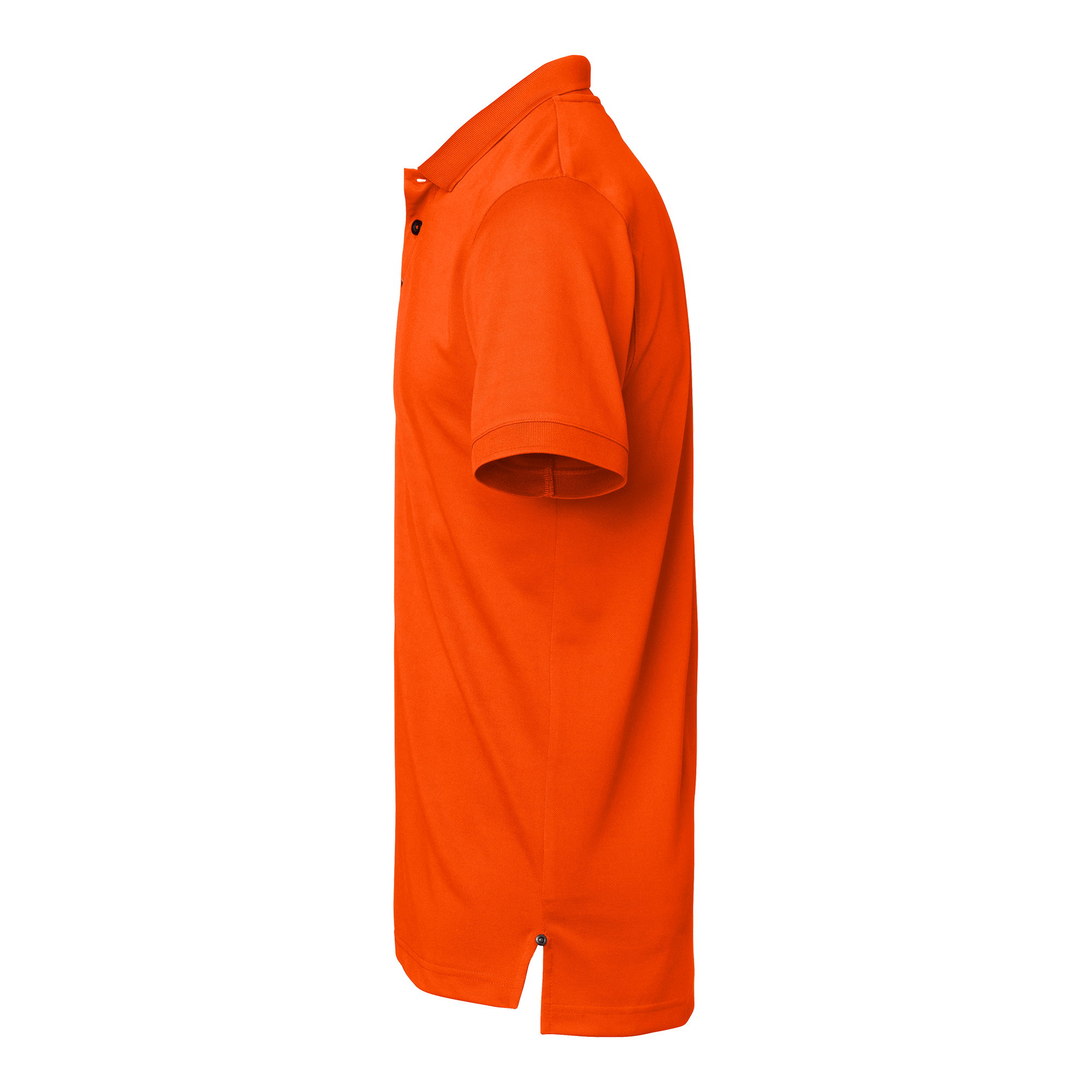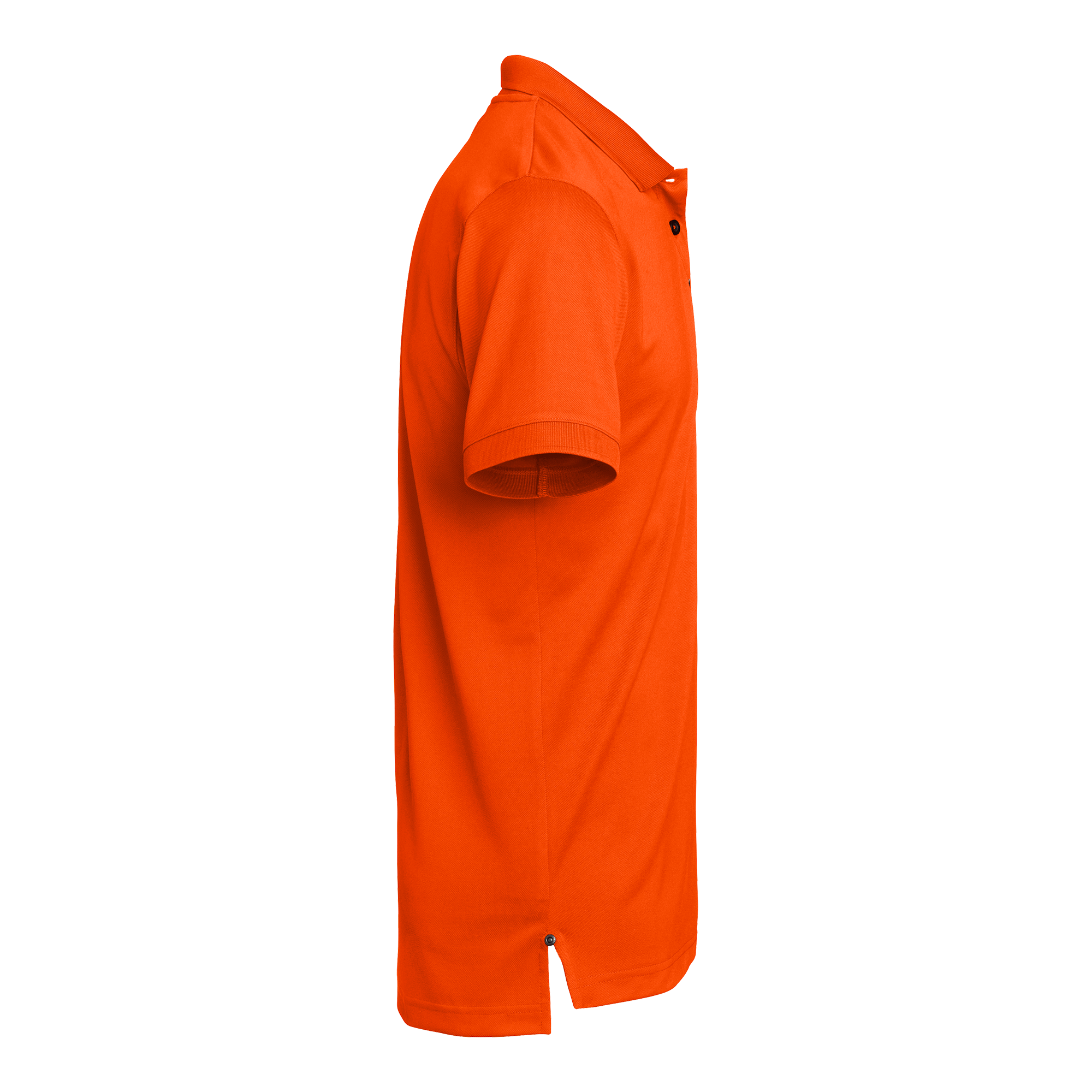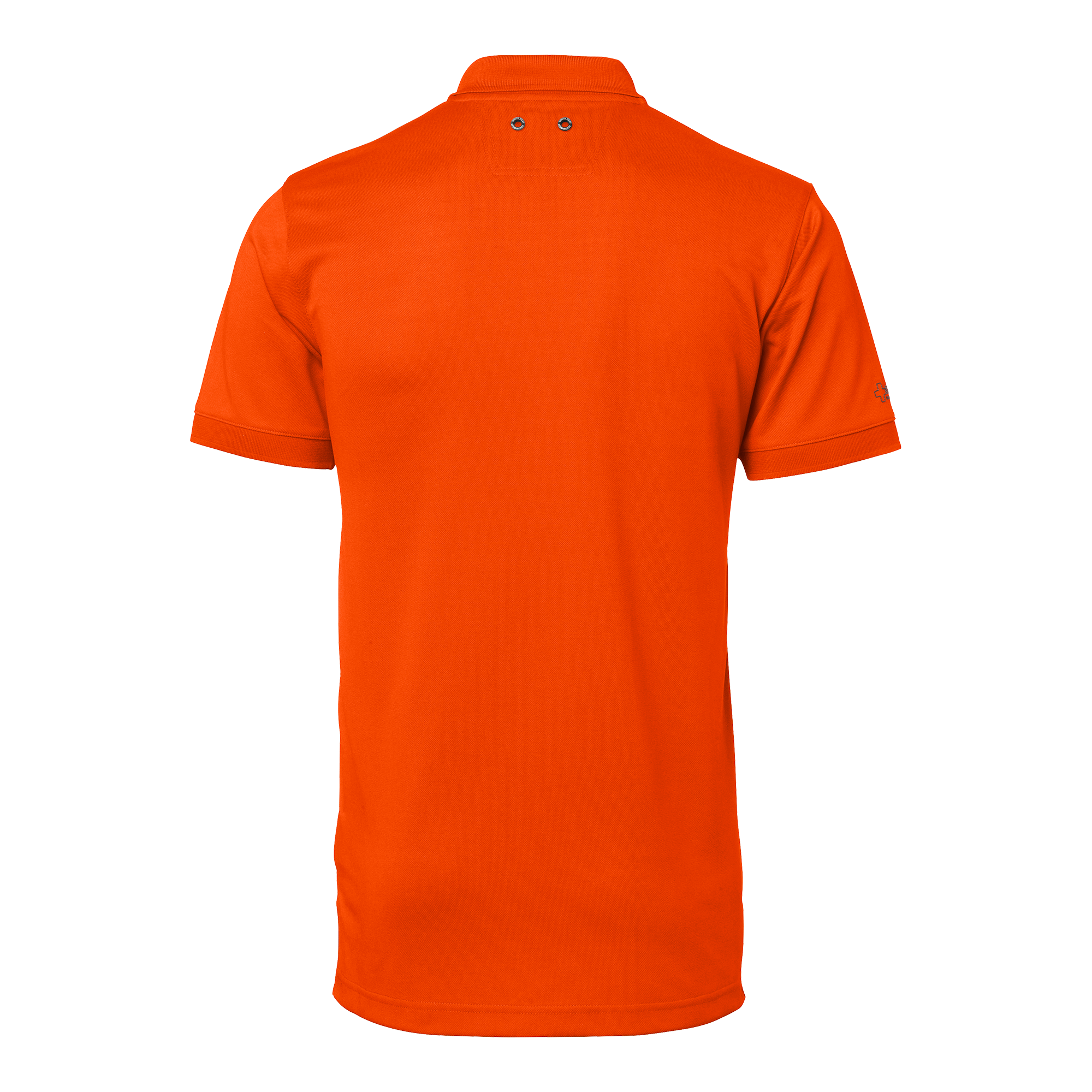 Funktionspiké med mjuk känsla, avvikande färg på knappar och knappslå. Eyelets under ärmen och på nackplattan. Kantband i nacke och sprund. Silikonlogotyp tryckt på höger ärm.