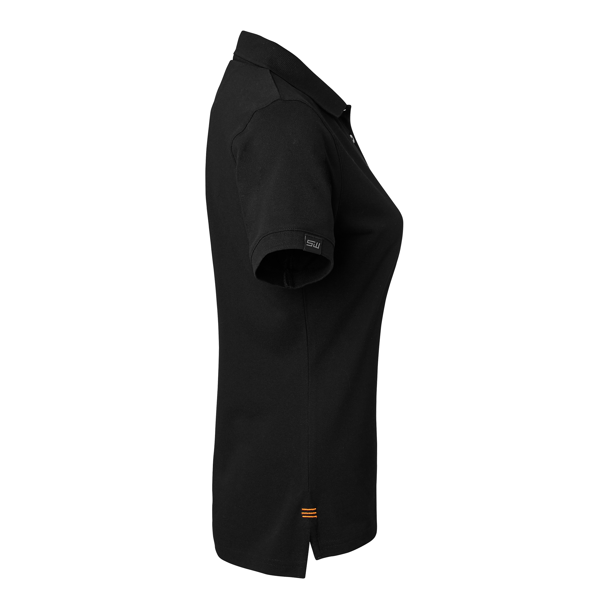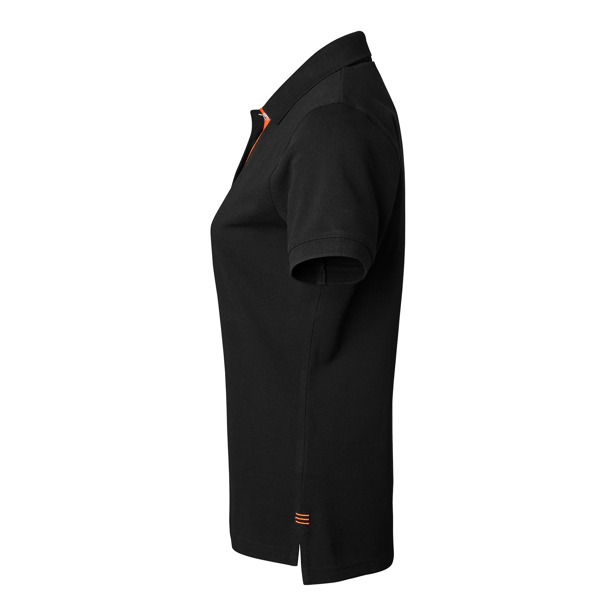 Piké i polyester och bomull med figurnära dampassform, kontrastfärgad knappslå och vita knappar. Förstärkta sömmar, ribbstickad krage och ärmslut. Kontrastfärg i nackband och brodyr för en elegant look.