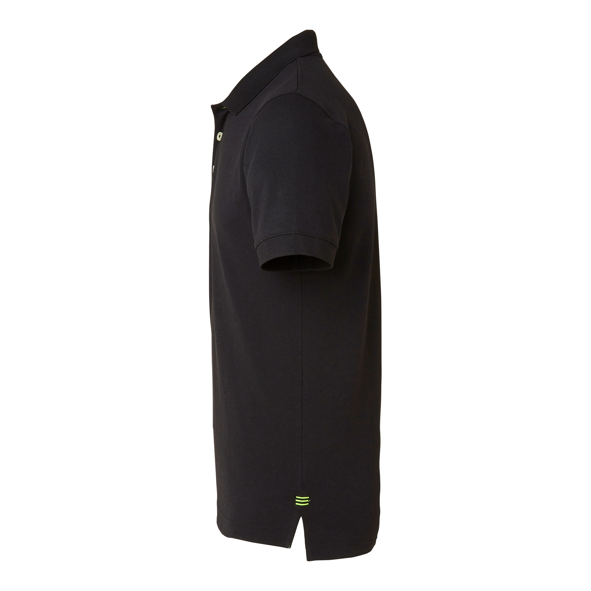Piké i polyester och bomull med kontrastfärgad knappslå och vita knappar. Förstärkta sömmar, ribbstickad krage och ärmslut. Kontrastfärg i nackband och brodyr vid sprund för en stilren look.