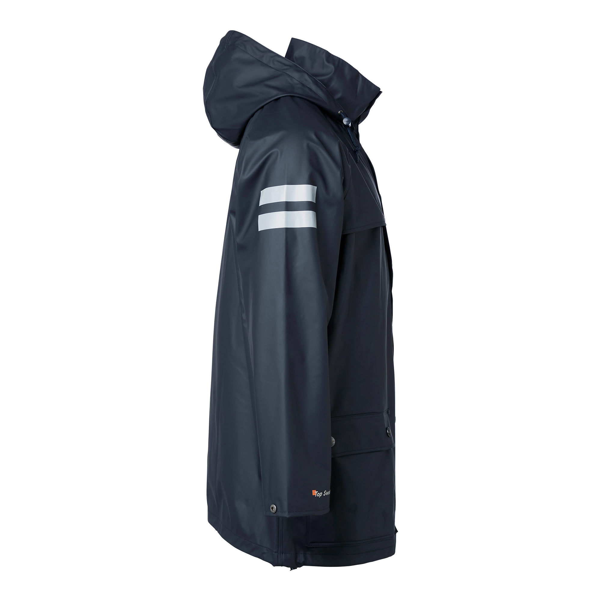 Top Swedes 196 Rain Set erbjuder ett komplett skydd mot regn med både jacka och byxa tillverkade i smidigt stretchmaterial. Den praktiska regnjackan är utrustad med två framfickor med lock, blixtlås med skydd och en huva med snodd för extra skydd. De svetsade sömmarna säkerställer att inget vatten tränger in. Byxorna har resår och justerbar snodd i midjan för optimal passform, samt justerbar knäppning vid foten för att hålla regnet ute. Perfekt för yrkesverksamma som behöver ett pålitligt regnskydd under tuffa arbetsförhållanden. Upptäck hållbarhet och komfort med Top Swedes 196 Rain Set.
