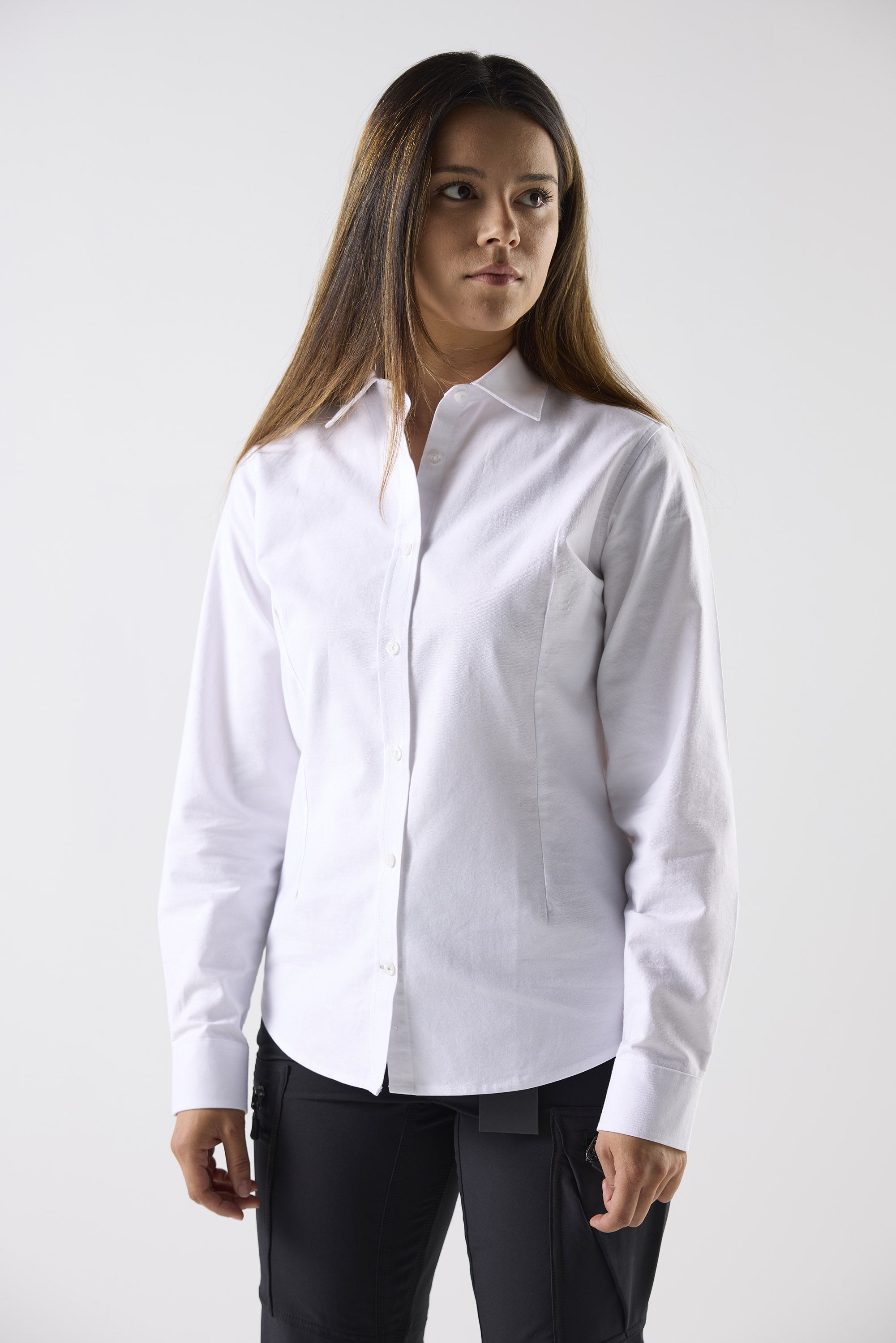 Aline Shirt W från South West är en stilren och figursydd damskjorta tillverkad i 100% GOTS-certifierad bomull – ett hållbart val för den medvetne. Skjortan har en turn down-krage och knäppning framtill som ger en tidlös look. Den lätt rundade fållen och något längre baksidan ger en bekväm passform med extra rörelsefrihet. Aline är perfekt för både arbete, vardag och festliga tillfällen, och blir snabbt en favorit i garderoben. Tack vare sitt genomtänkta snitt och miljövänliga material är den ett utmärkt val för företag som söker eleganta, hållbara plagg för sina medarbetare.