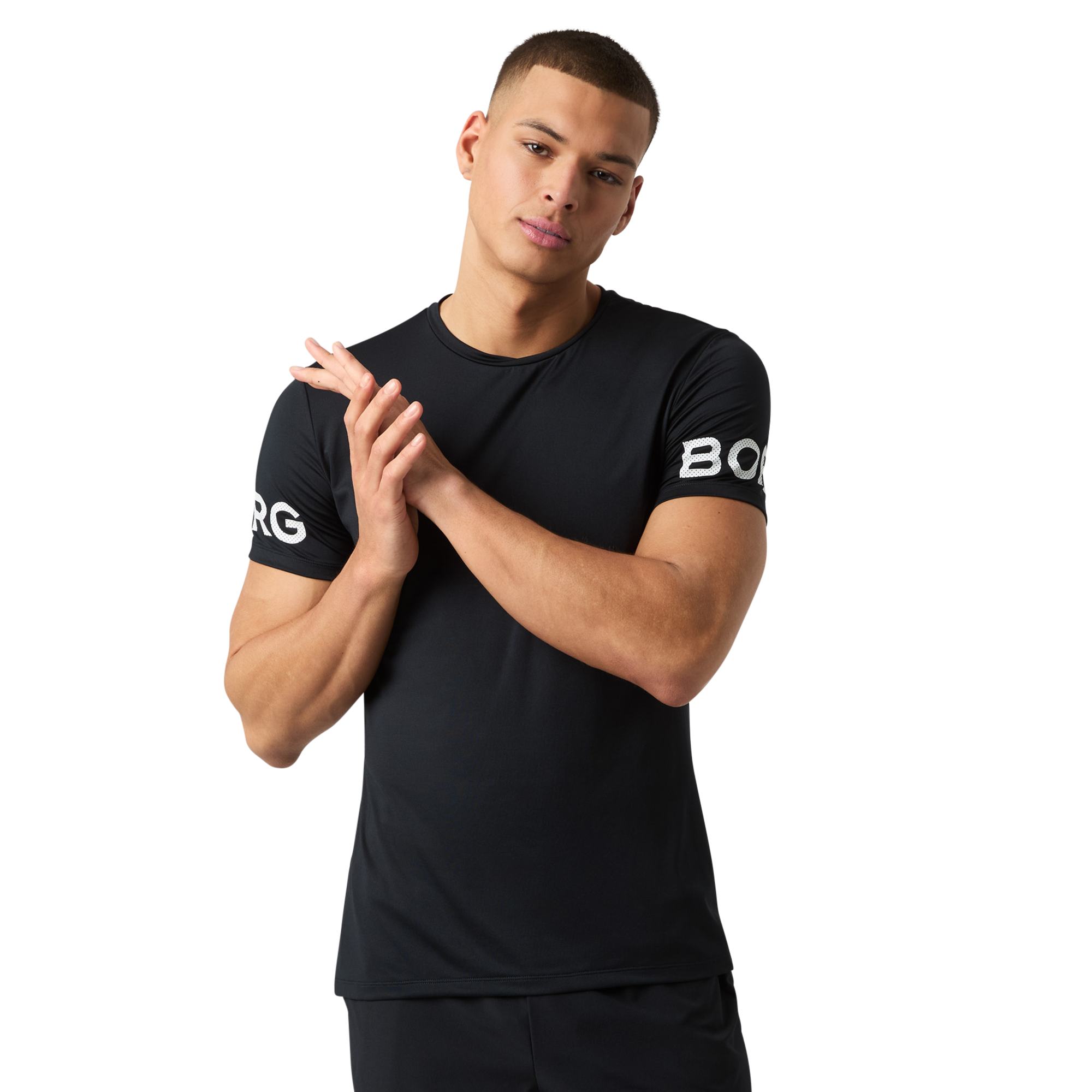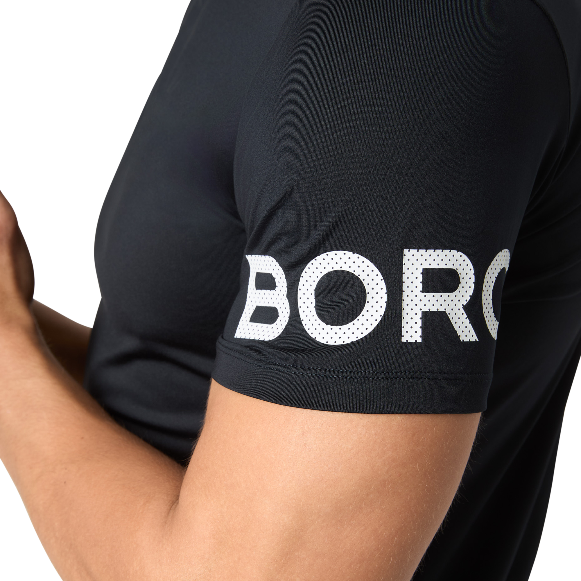Björn Borg T-Shirt BB Logo är en funktionell t-shirt som gör träningen bekvämare. Materialet i återvunnen polyester och elastan är tunt, mjukt och stretchigt. Gjord av Hydro Pro-material som tranpsorterar bort fukt. Normal passform med rum för rörelse. Borg-tryck på ärmarna är en fin detalj.