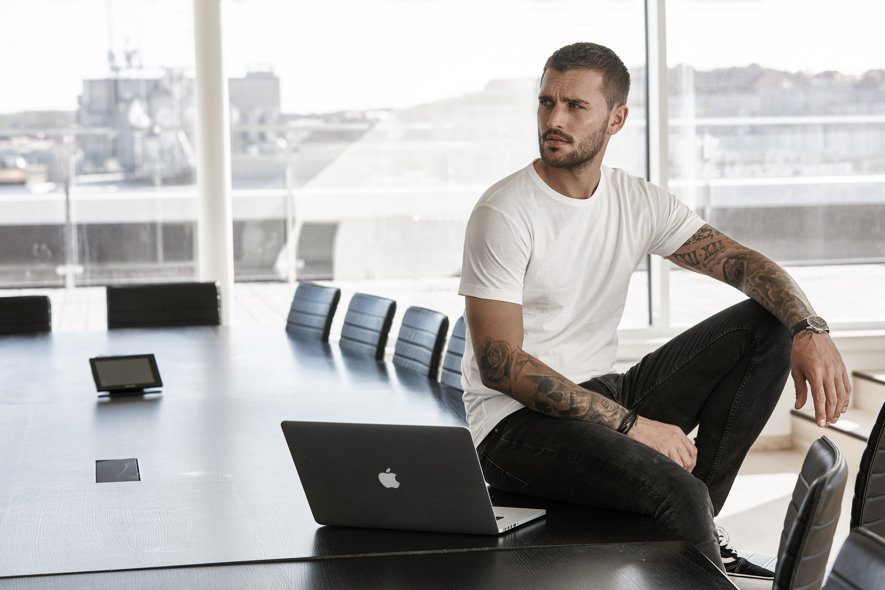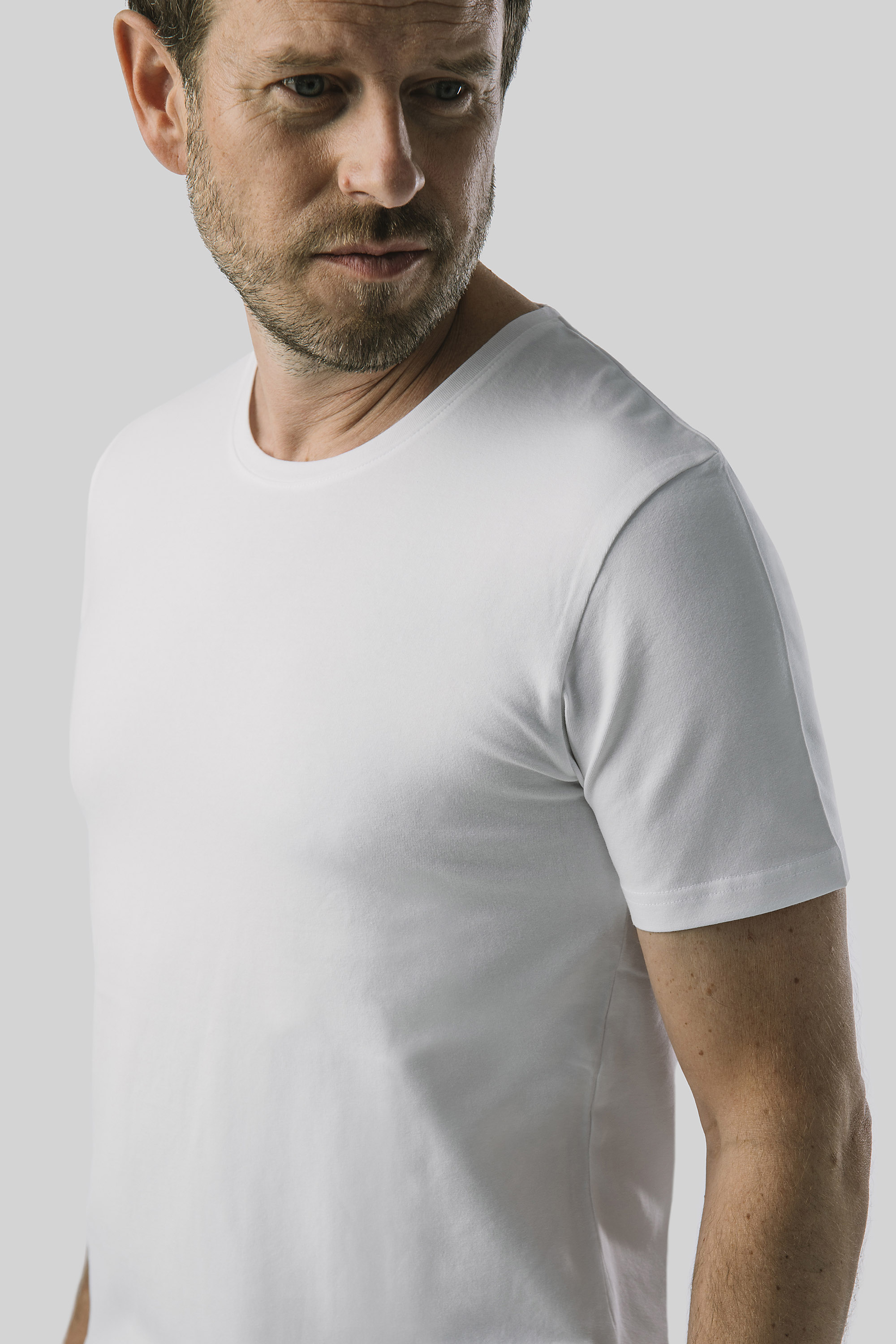 T-shirt i silikontvättad single jersey med figurnära passform och bandad halskrage. En bekväm och stilren modell som passar både på jobbet och till vardags.