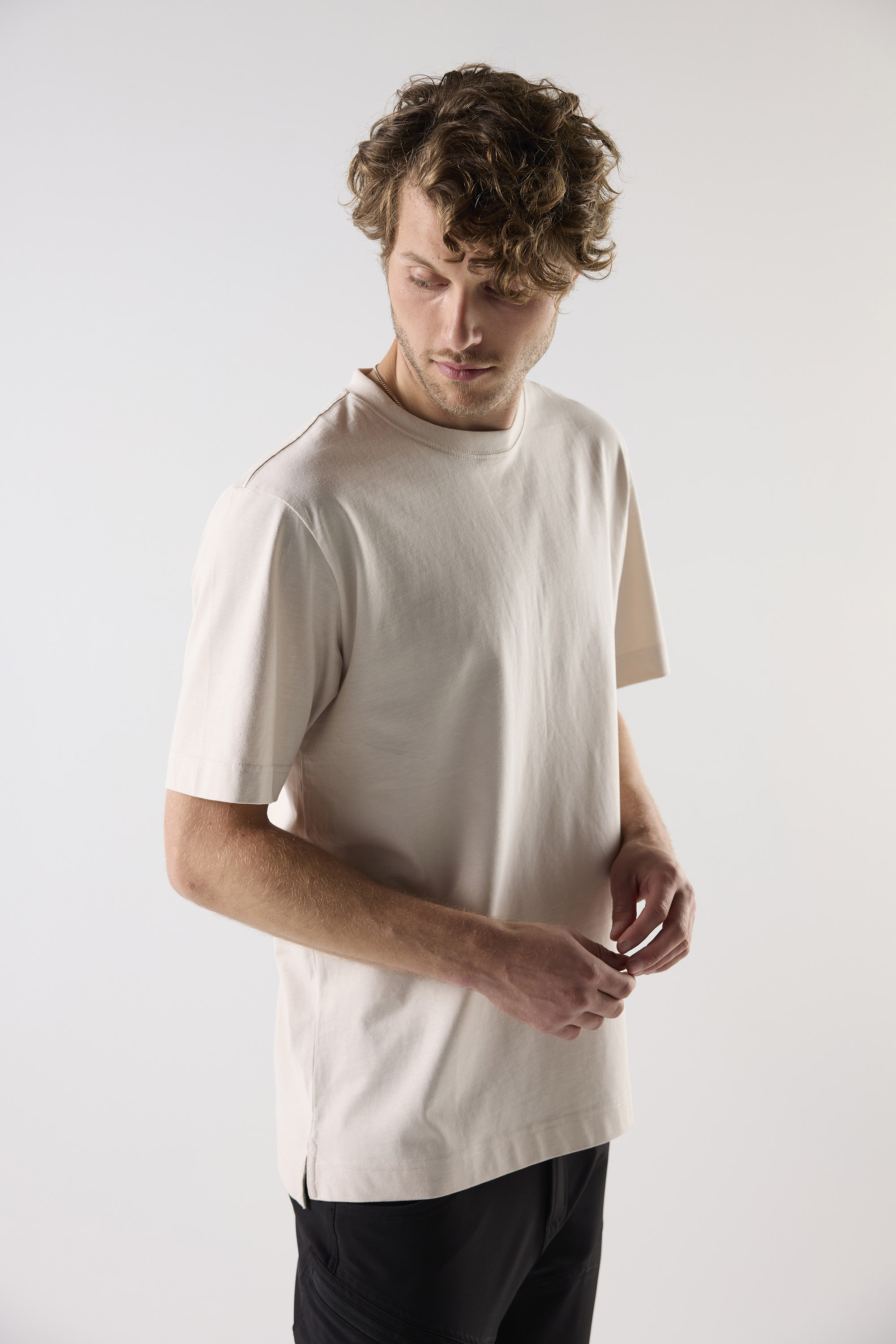 T-shirt i 100% GOTS-certifierad bomull med rundhals. Snygg passform för en bekväm och stilren look, perfekt för både arbete och fritid. Detaljer som stickningar vid ärmslut och slitsar i sidorna. Välj en storlek större om du vill ha ett modernt oversized utseende. T-shirten tillverkas utan nacketikett vilket ger dig möjligheten till egen profilering.