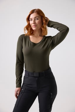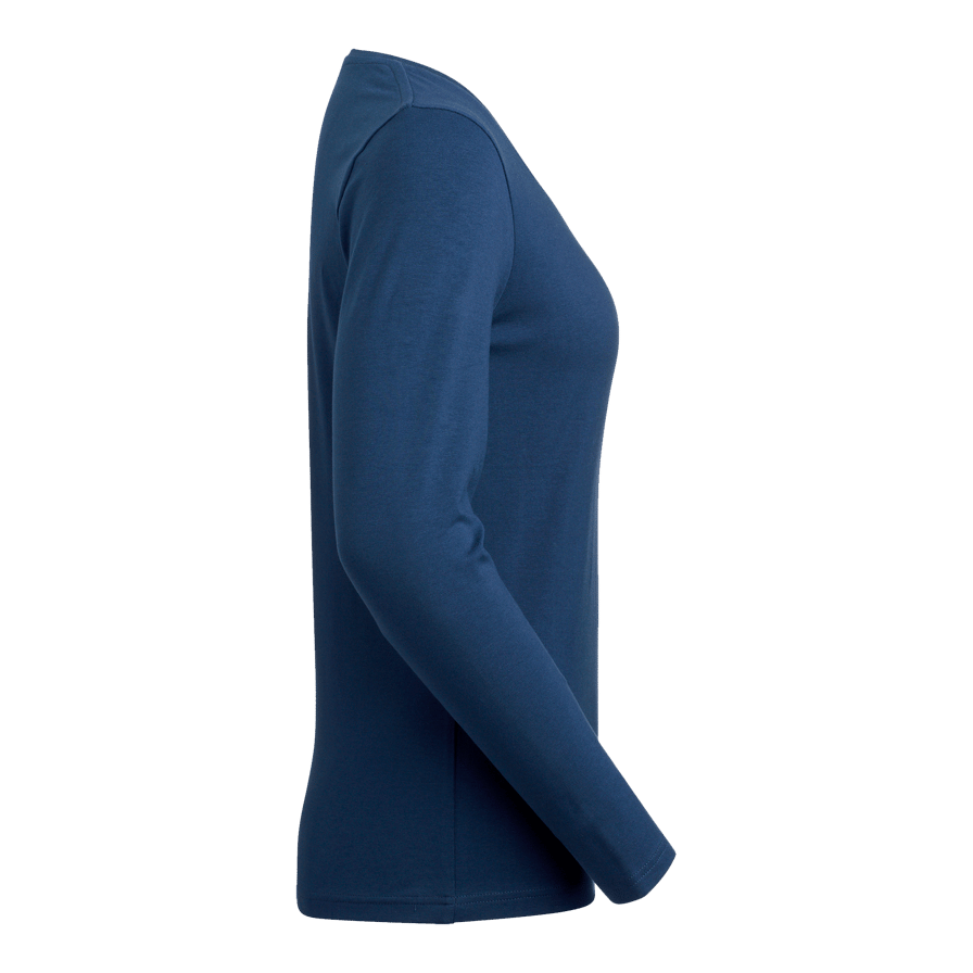 Långärmad T-shirt i Fairtrade-certifierad bomull med stretch och rundhals med smal ribbkant. Figurnära dampassform för en stilren och bekväm look, perfekt för både arbete och fritid.