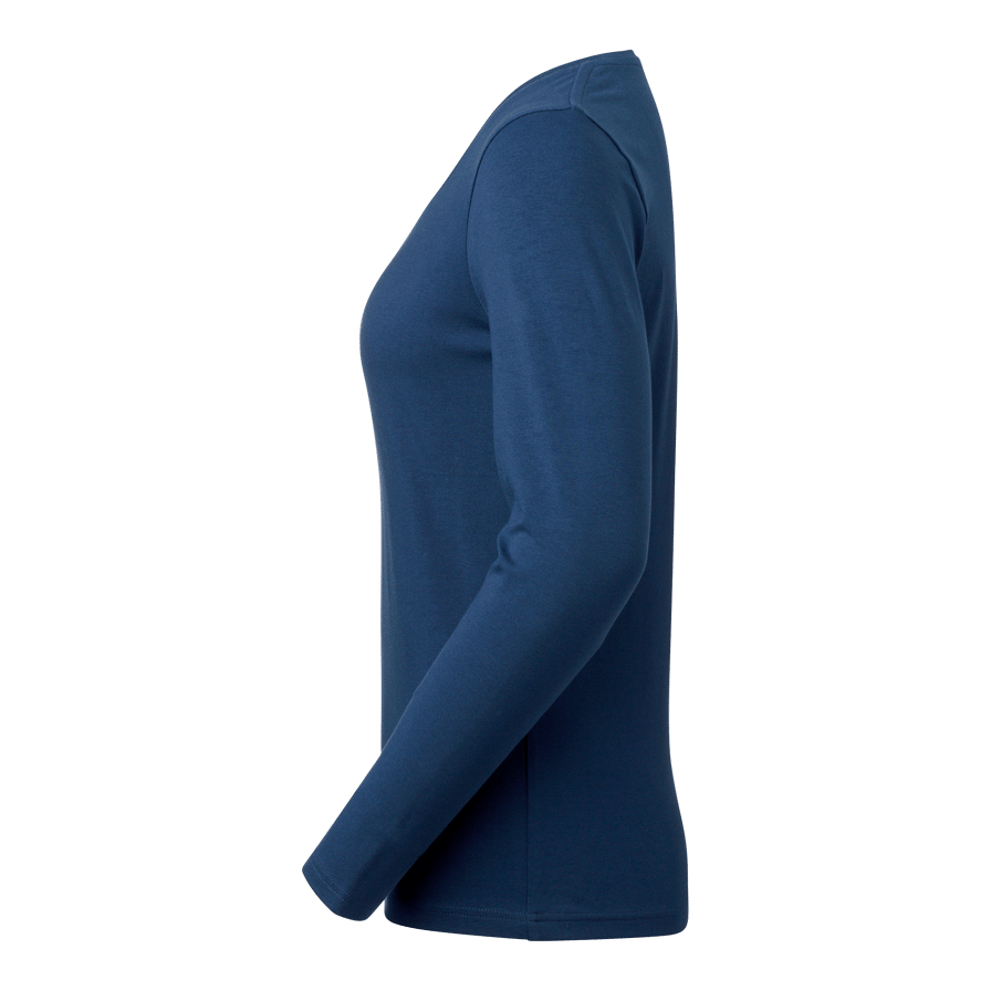 Långärmad T-shirt i Fairtrade-certifierad bomull med stretch och rundhals med smal ribbkant. Figurnära dampassform för en stilren och bekväm look, perfekt för både arbete och fritid.
