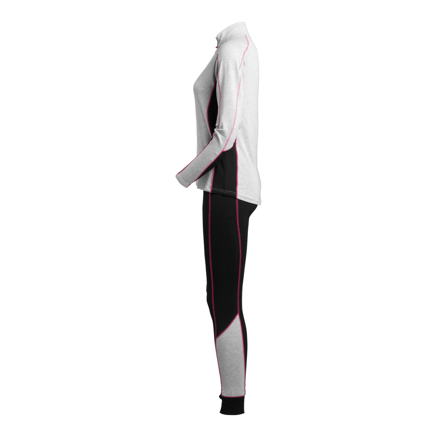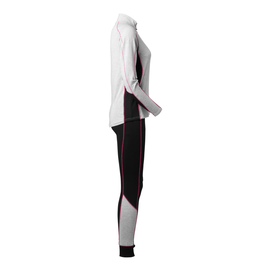 Funktionsunderställ i dampassform i Life Wear Bamboo® med tvåfärgad design och kontrastsömmar. Mjukt och följsamt material som håller huden sval och fuktighetsreglerande. Praktisk dragkedja i halsen. Bambuns naturliga egenskaper håller materialet fräscht längre.