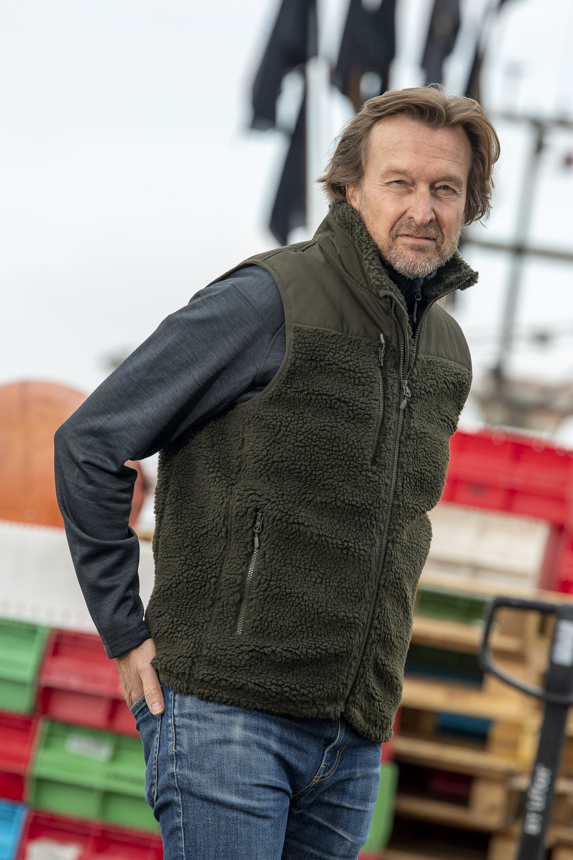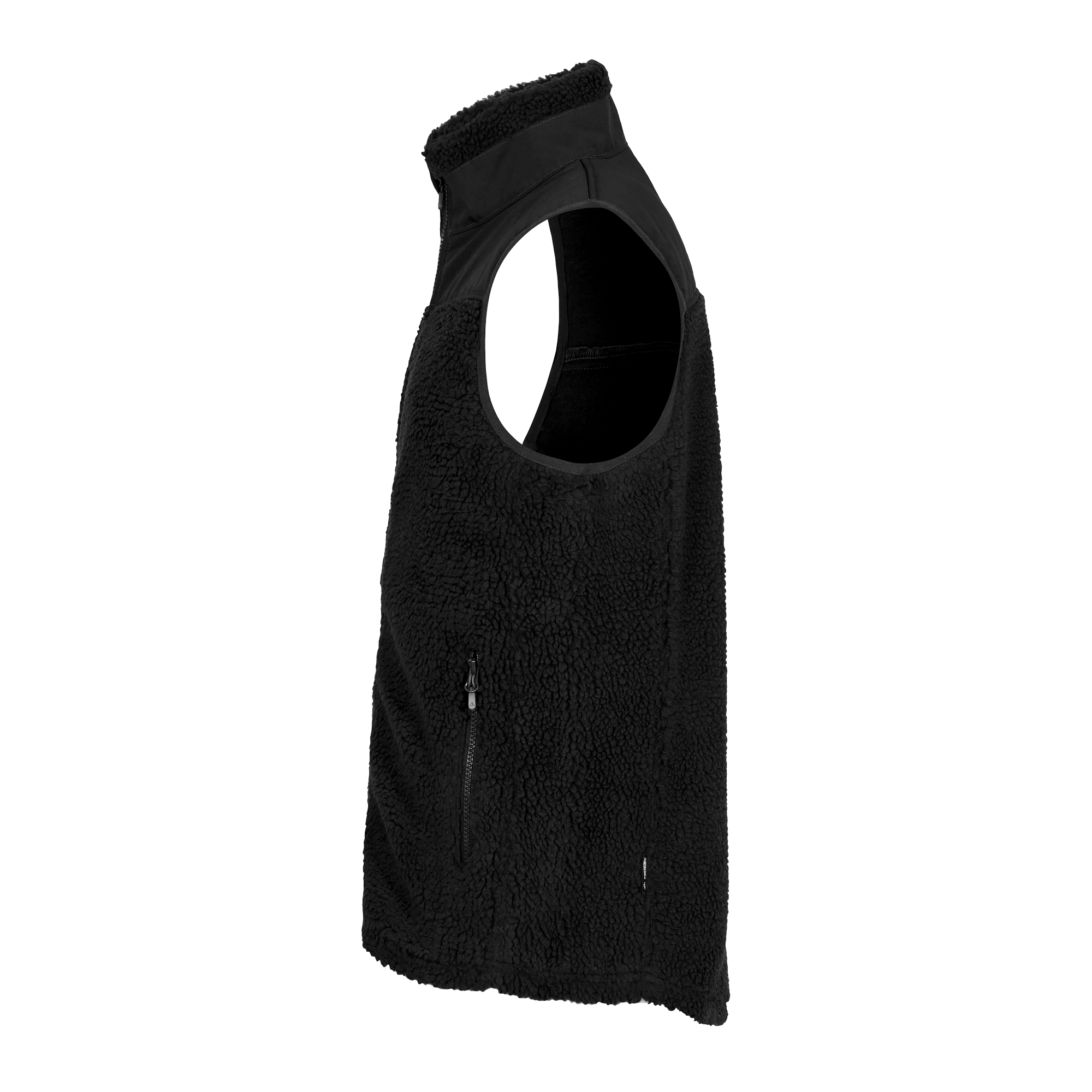 Norgay Vest från Matterhorn är en sherpafleeceväst i återvunnen polyester med förstärkningar i polyester/bomull på skuldrorna. Den har två sidfickor, en bröstficka och elastiska armhålor.